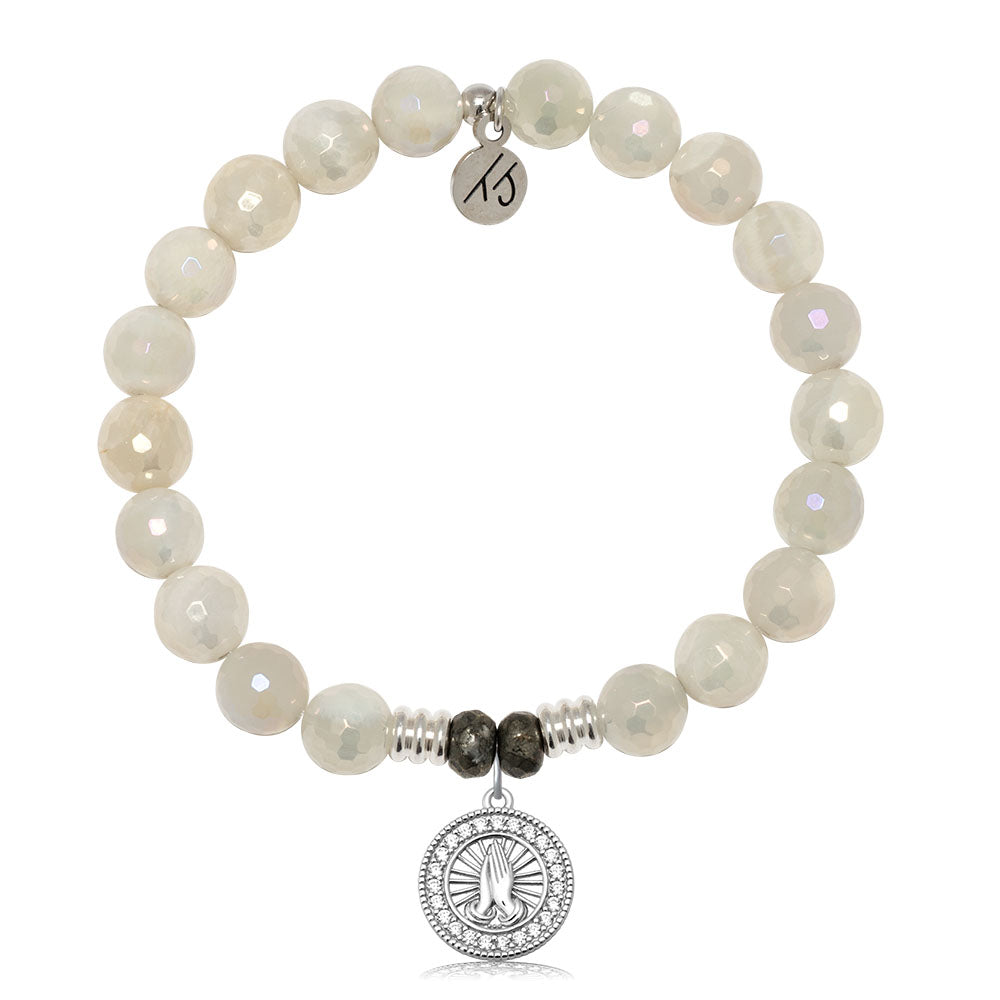 Moonstone Gemstone Bracelet with Prayers CZ Sterling Silver Charm