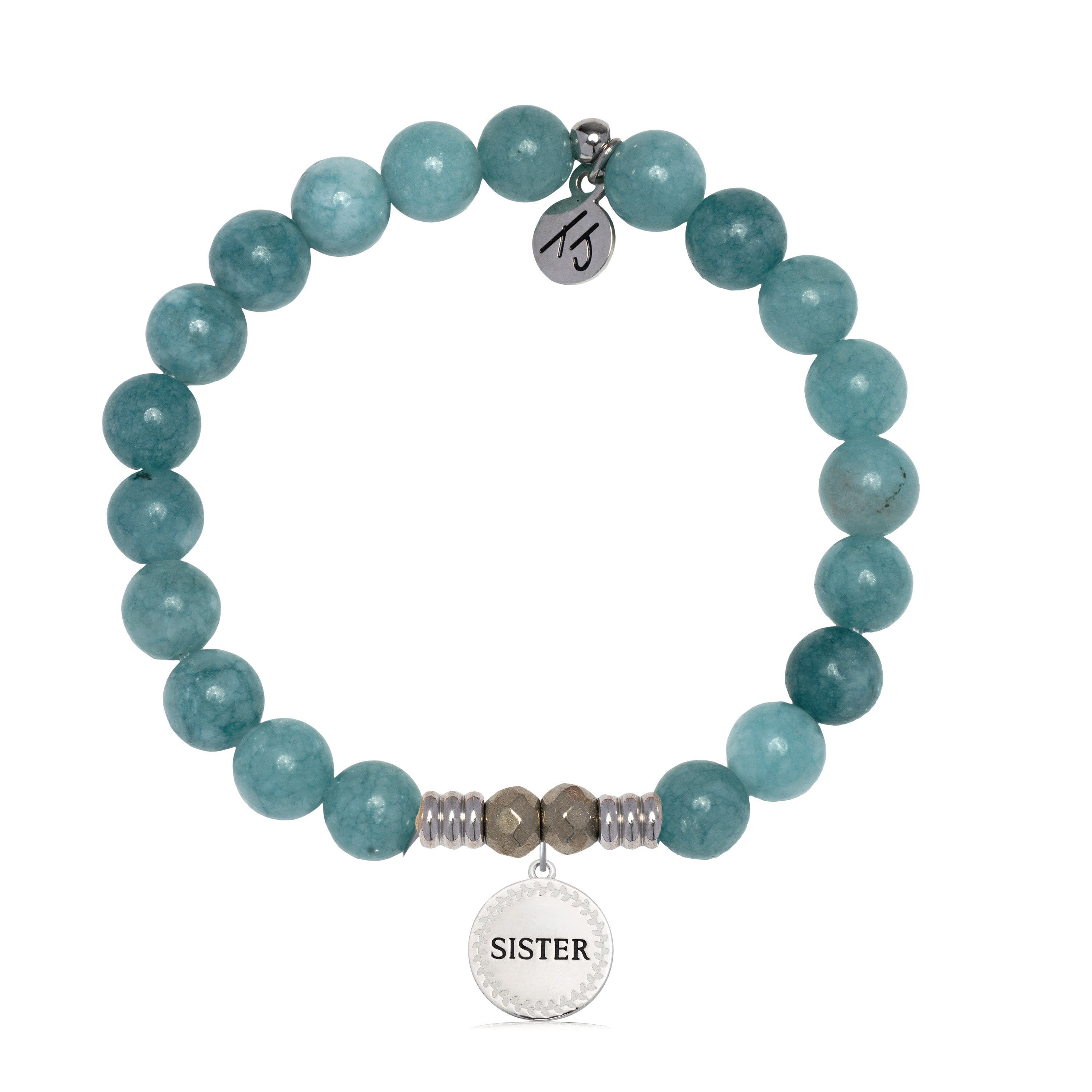 Mountain Blue Jade Gemstone Bracelet with Endless Love Sister Sterling Silver Charm
