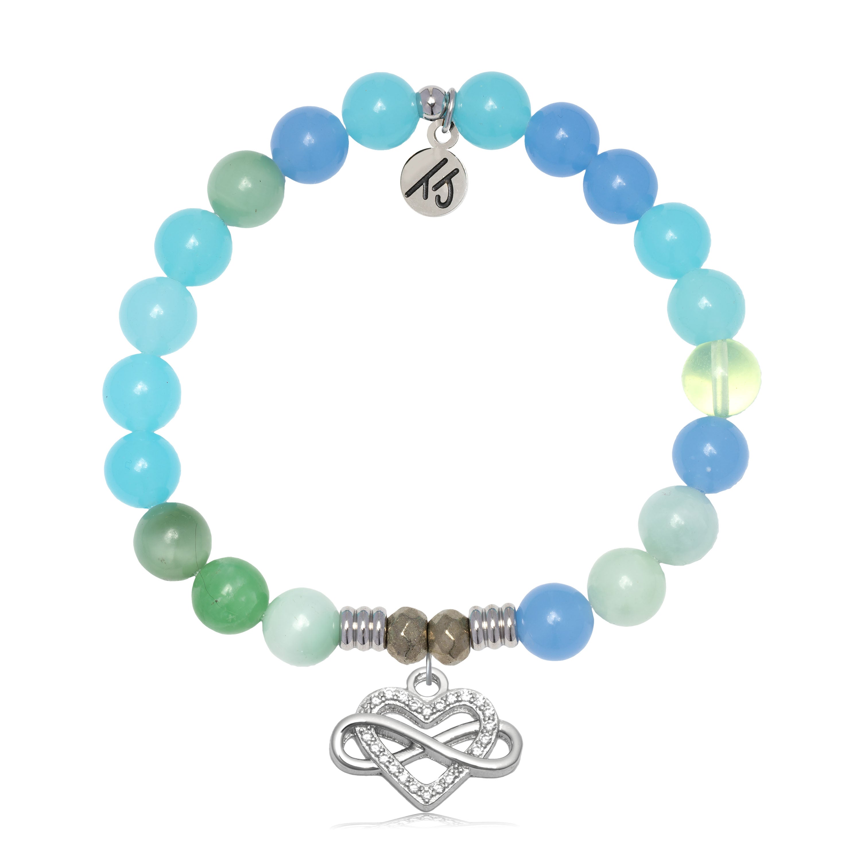 Multi Blue Jade Gemstone Bracelet with Endless Love Sterling Silver Charm