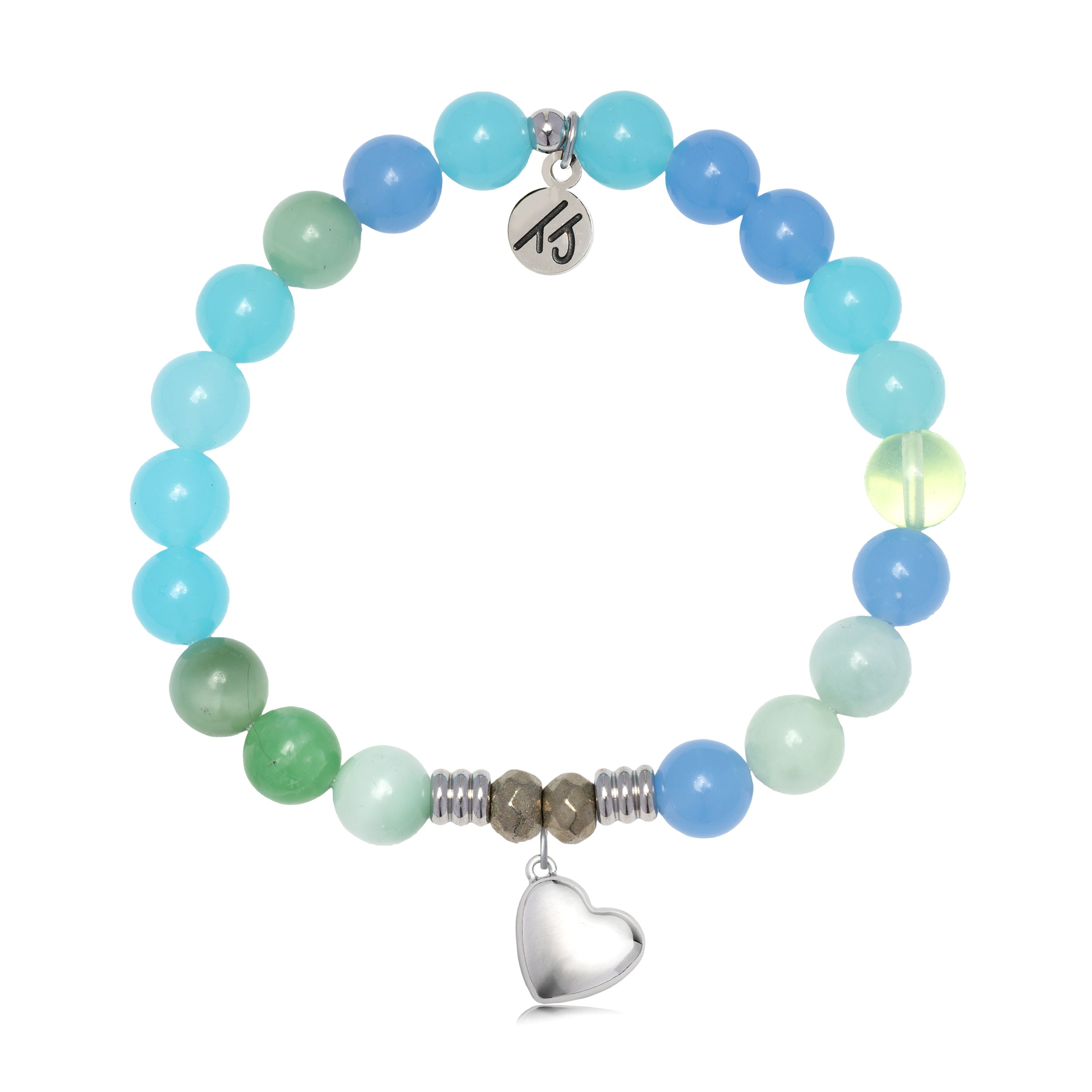 Multi Blue Jade Gemstone Bracelet with Love the Life You Live Sterling Silver Charm