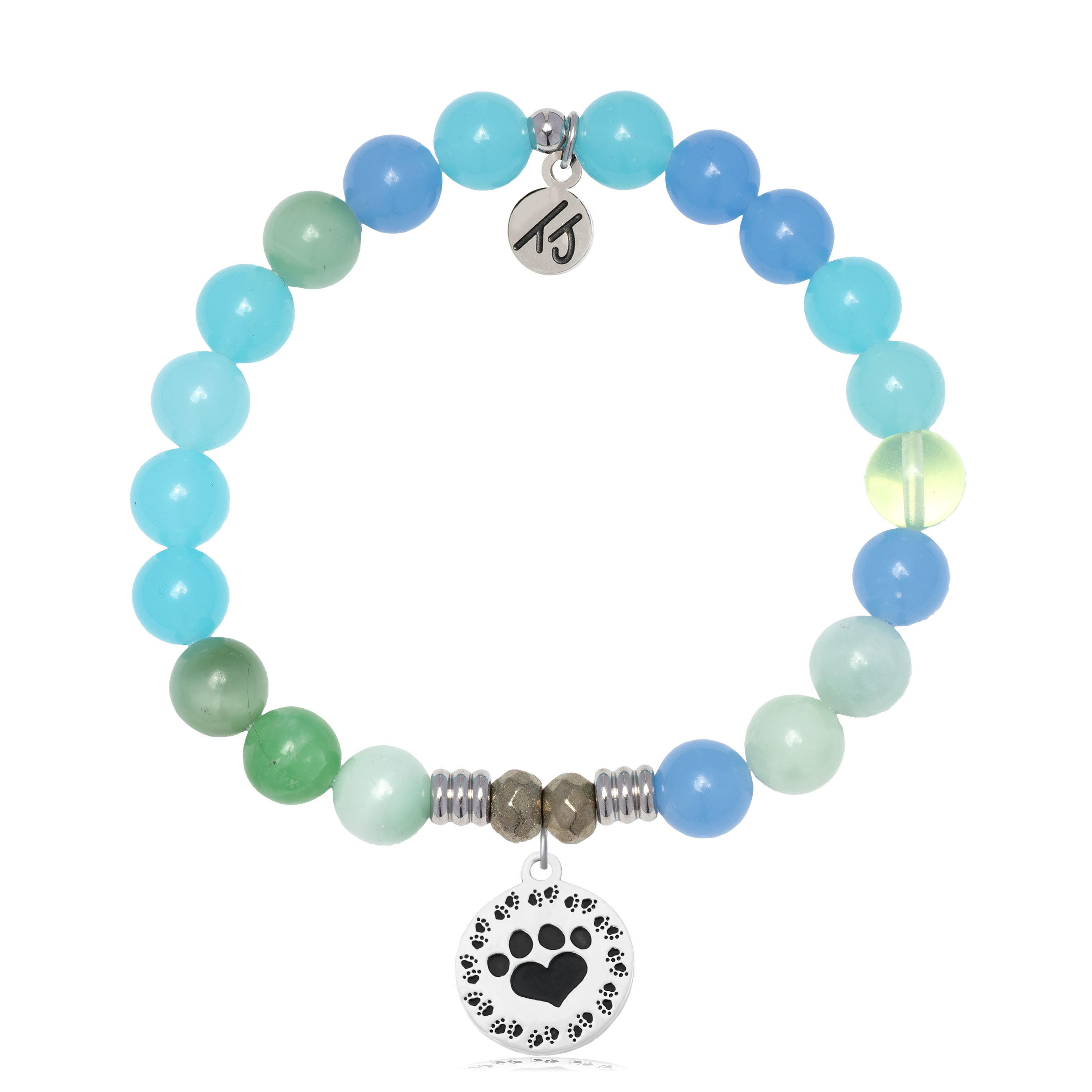 Multi Blue Jade Gemstone Bracelet with Paw Print Sterling Silver Charm