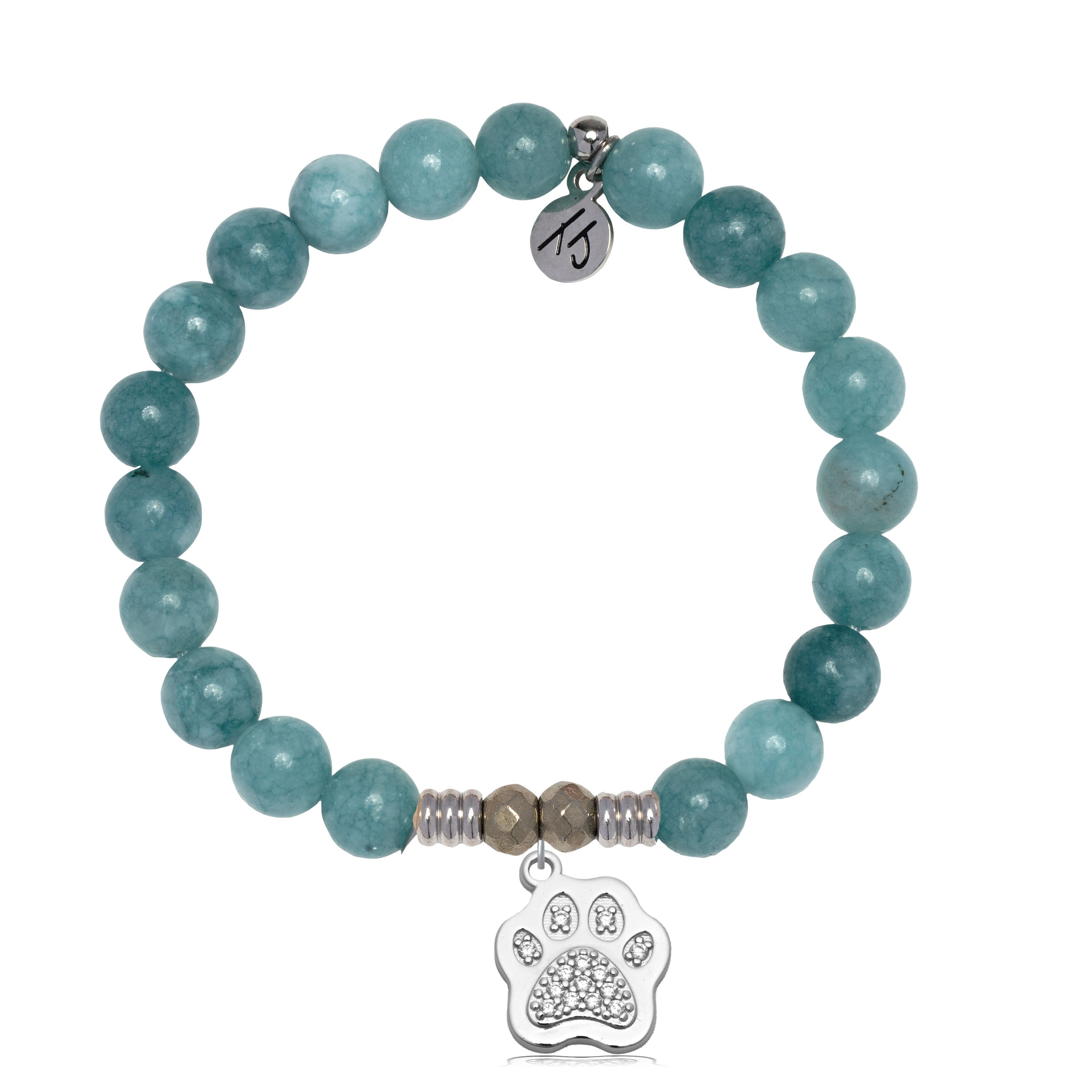 Mountain Blue Jade Gemstone Bracelet with Paw CZ Sterling Silver Charm