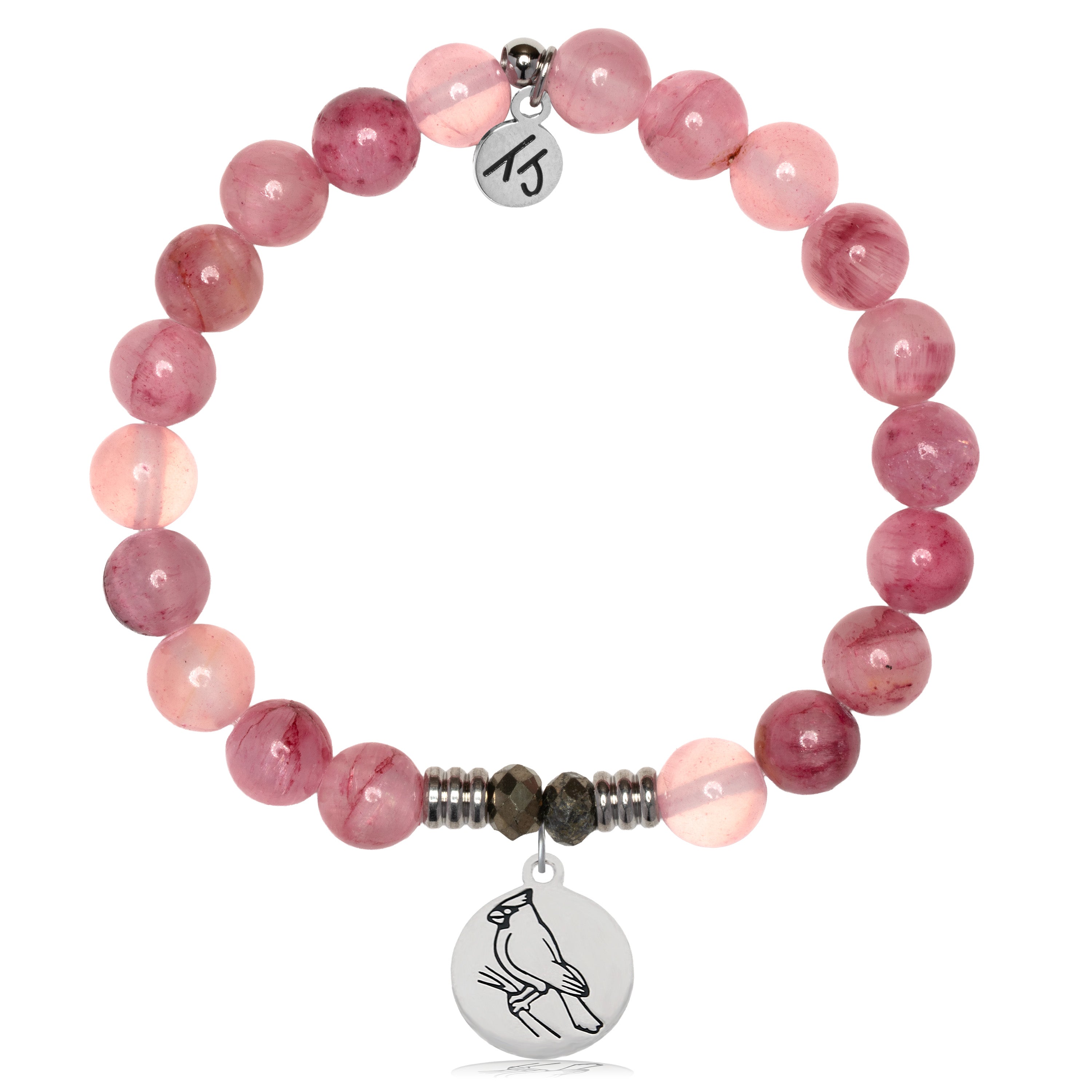 Pink Chalcedony Gemstone Bracelet with Cardinal Sterling Silver Charm