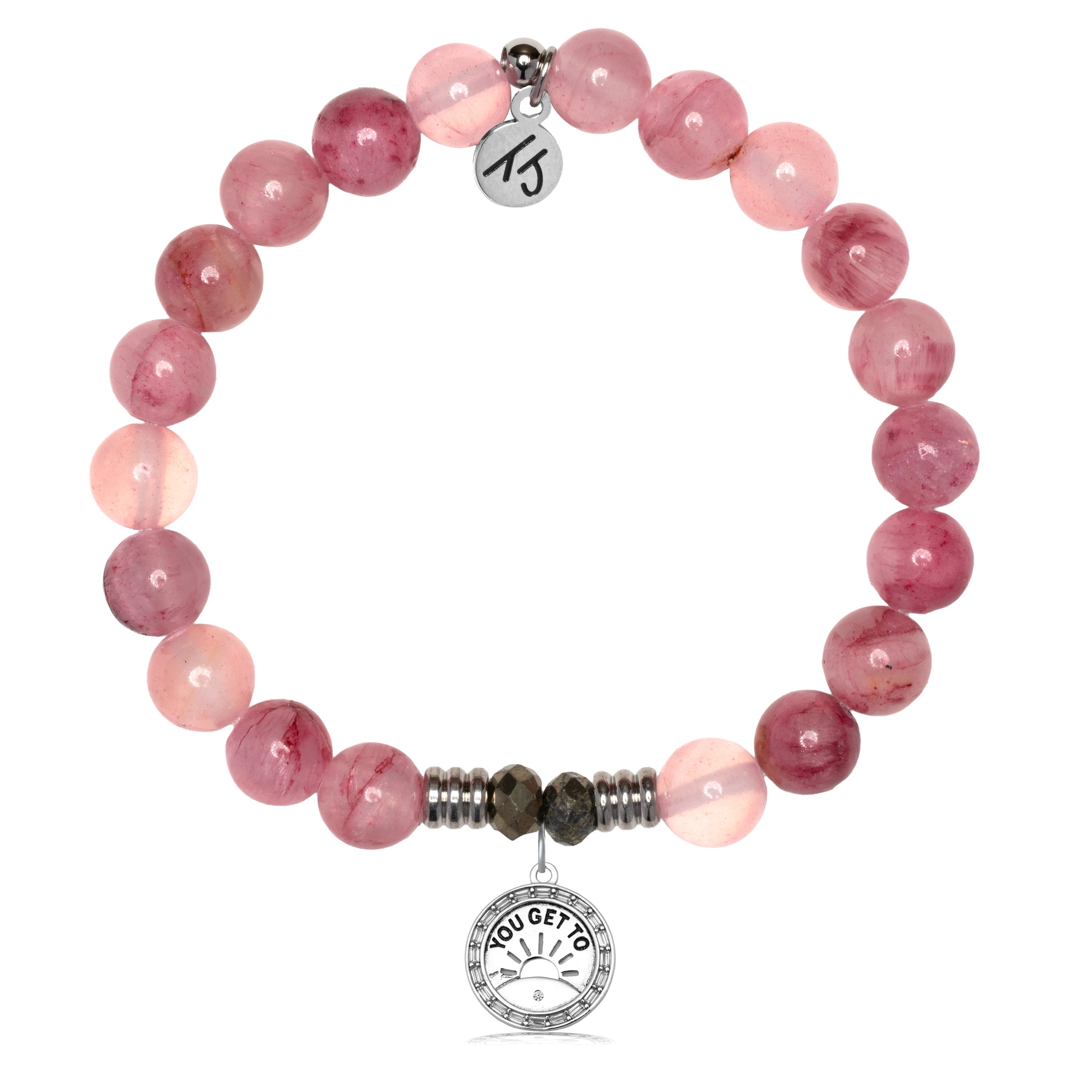 Pink Chalcedony Gemstone Bracelet with You Get To Sterling Silver Charm