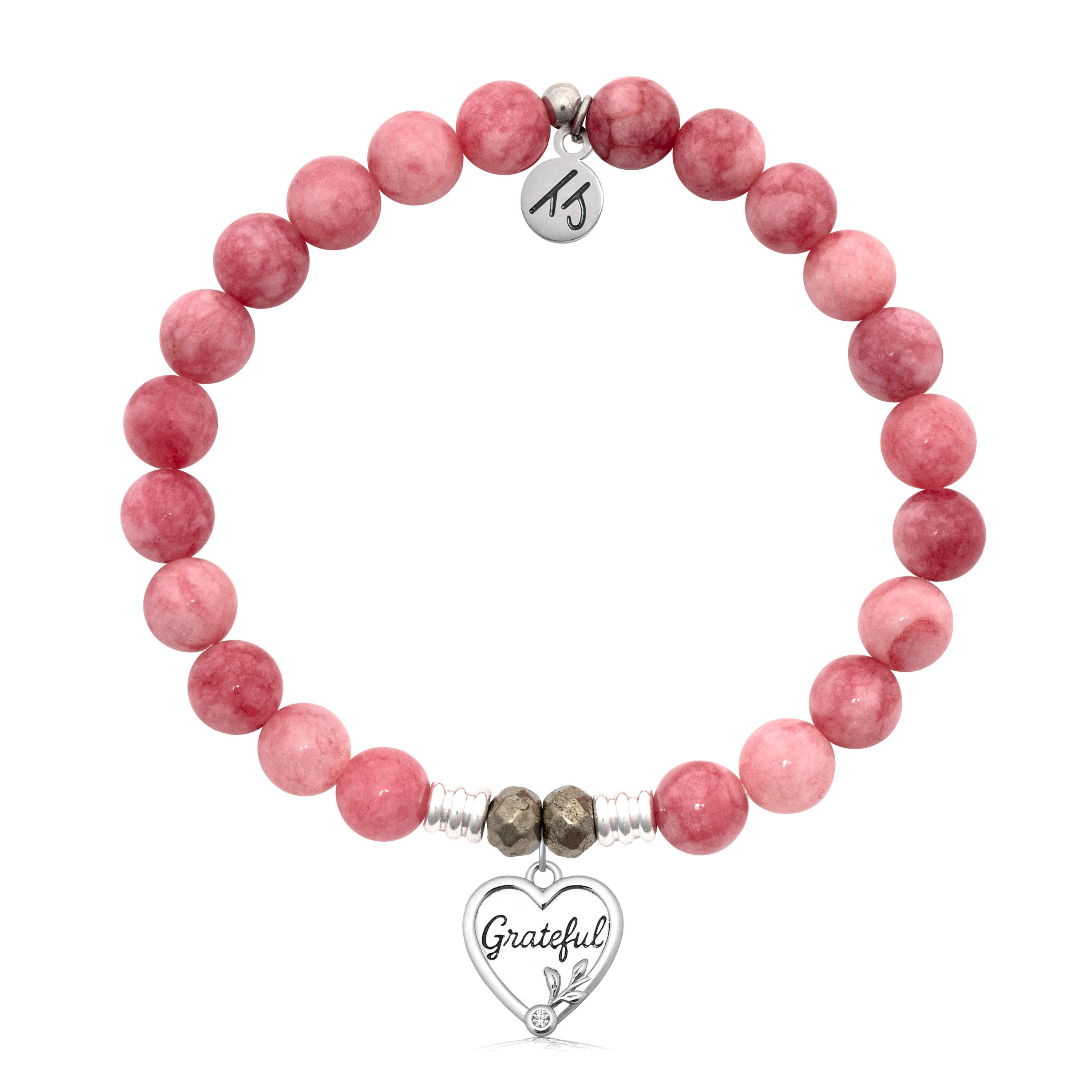 Pink Jade Gemstone Bracelet with Grateful Sterling Silver Charm