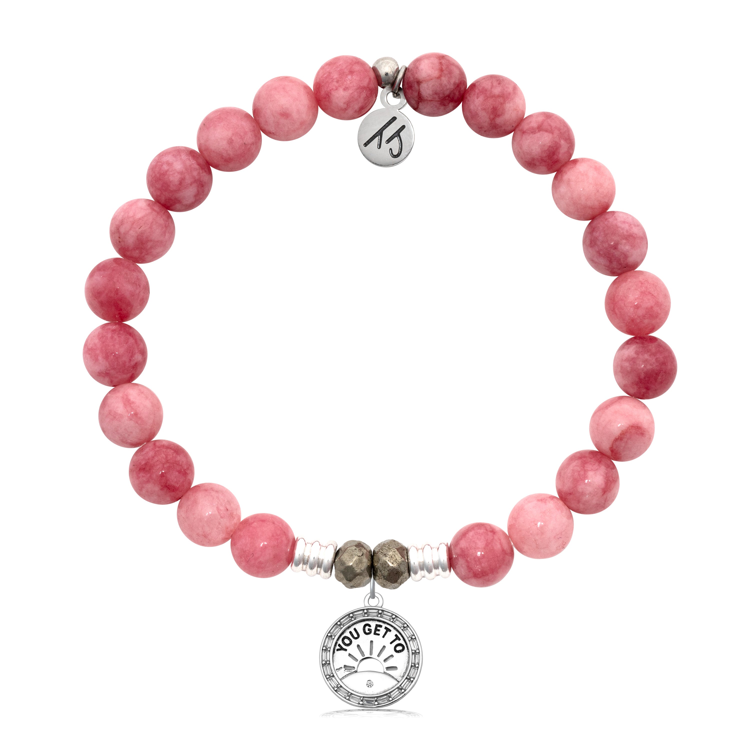 Pink Jade Gemstone Bracelet with You Get To Sterling Silver Charm