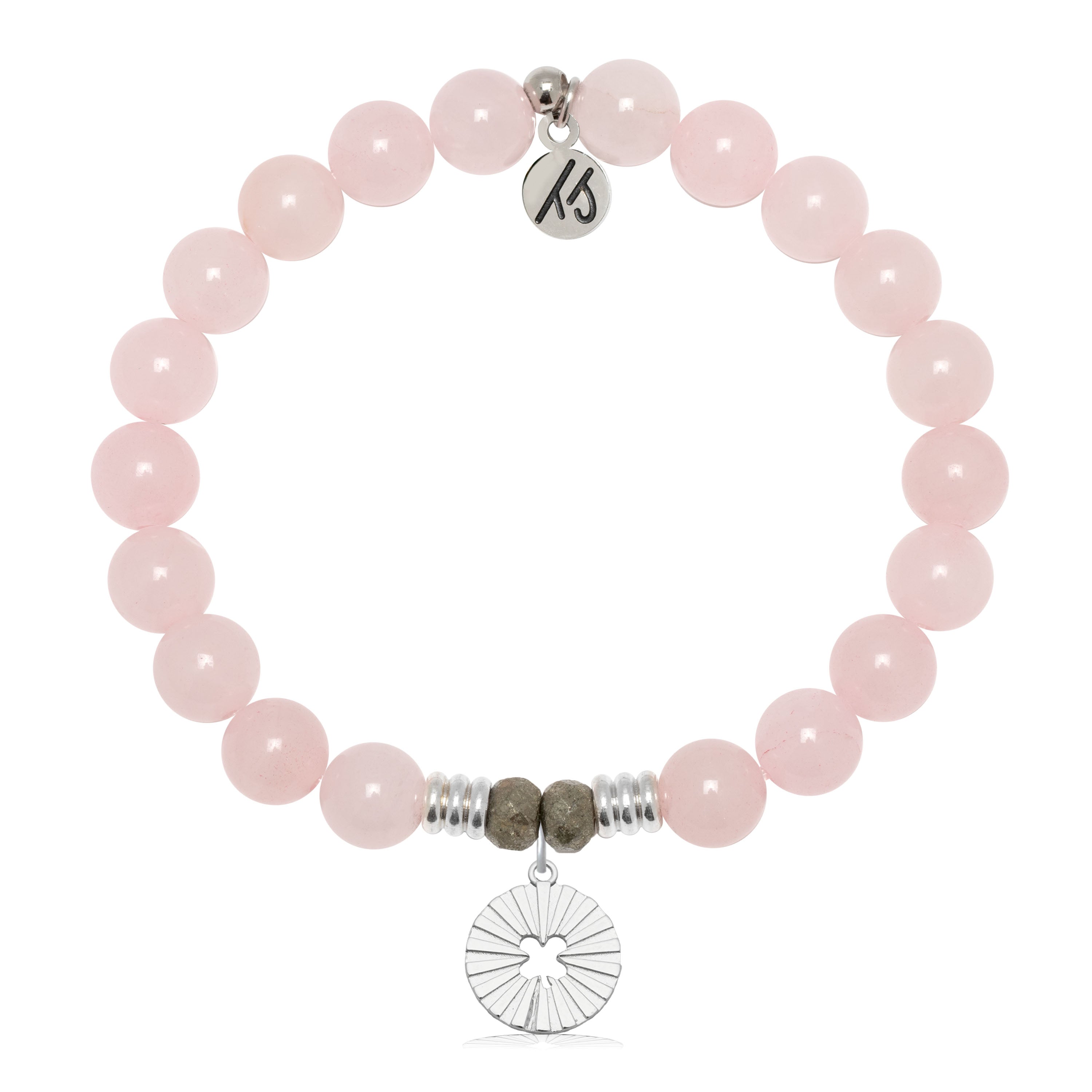 Prayers Collection: Rose Quartz Gemstone Bracelet with Prayers of Luck Sterling Silver Charm