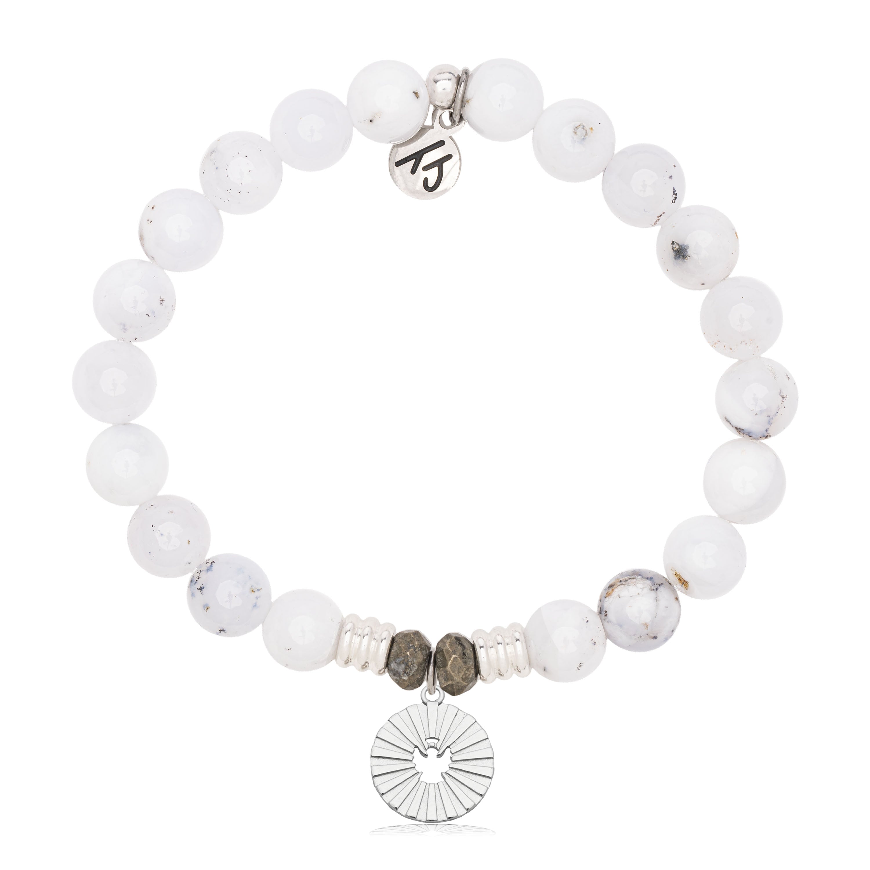 Prayers Collection: White Chalcedony Gemstone Bracelet with Prayers of Angels Sterling Silver Charm