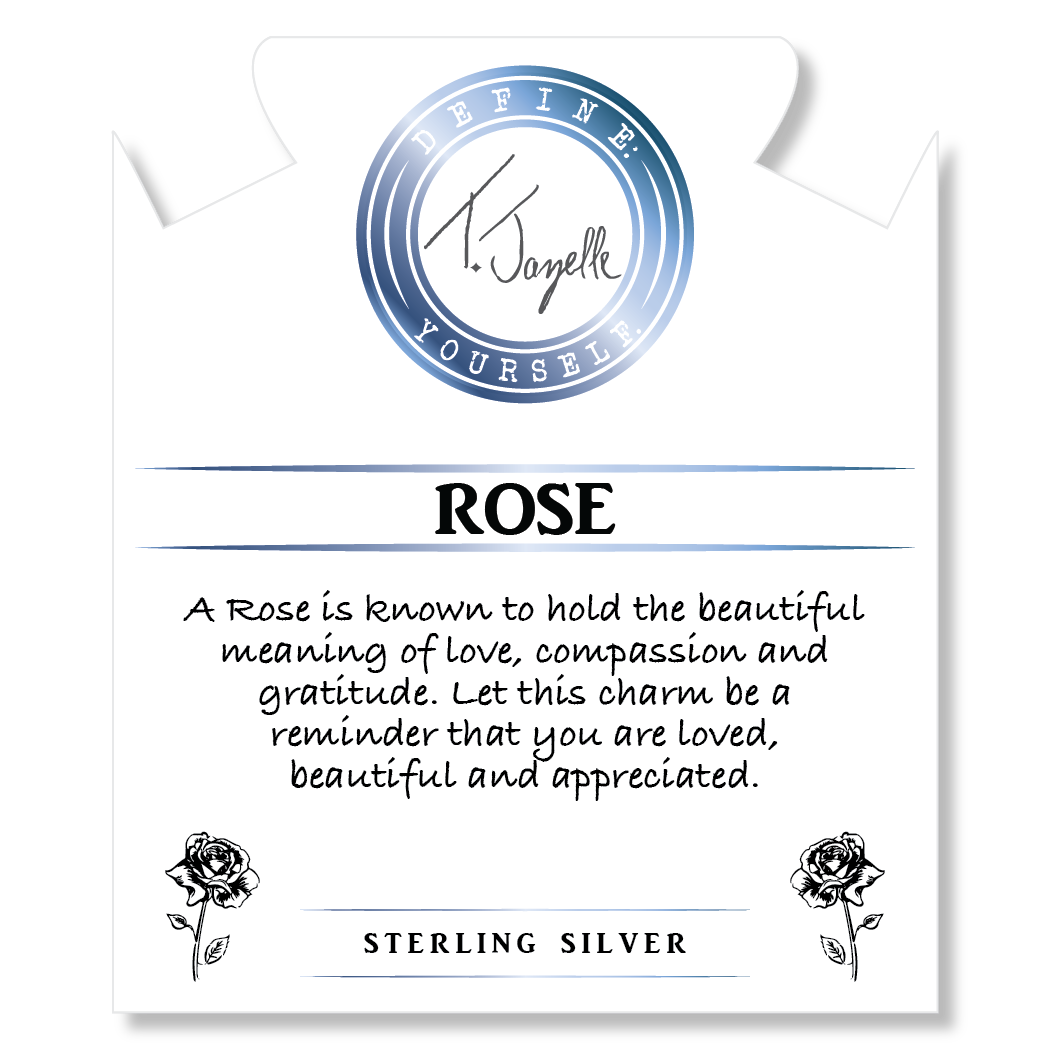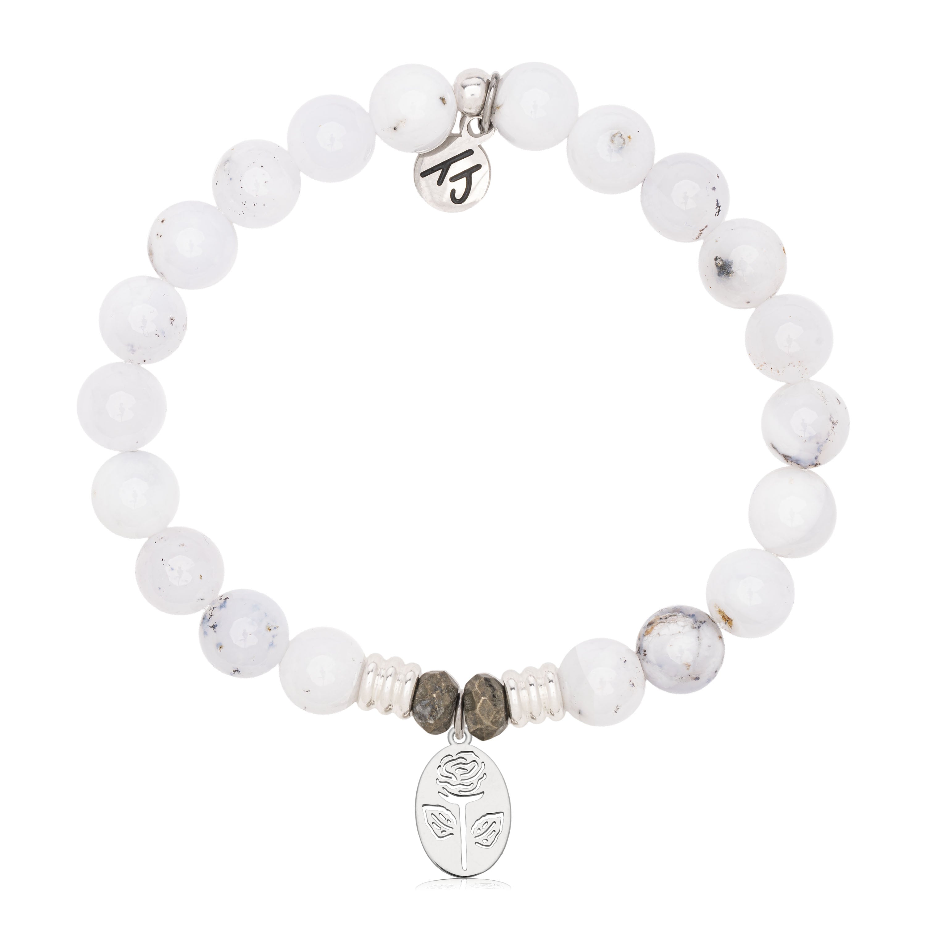 White Chalcedony Gemstone Bracelet with Rose Cutout Sterling Silver Charm