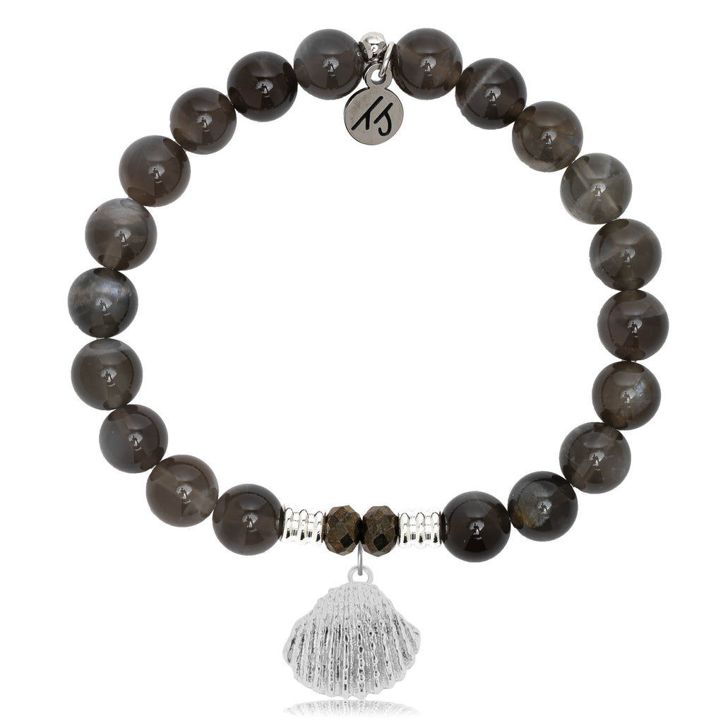 Sand Moonstone Gemstone Bracelet with Seashell Sterling Silver Charm