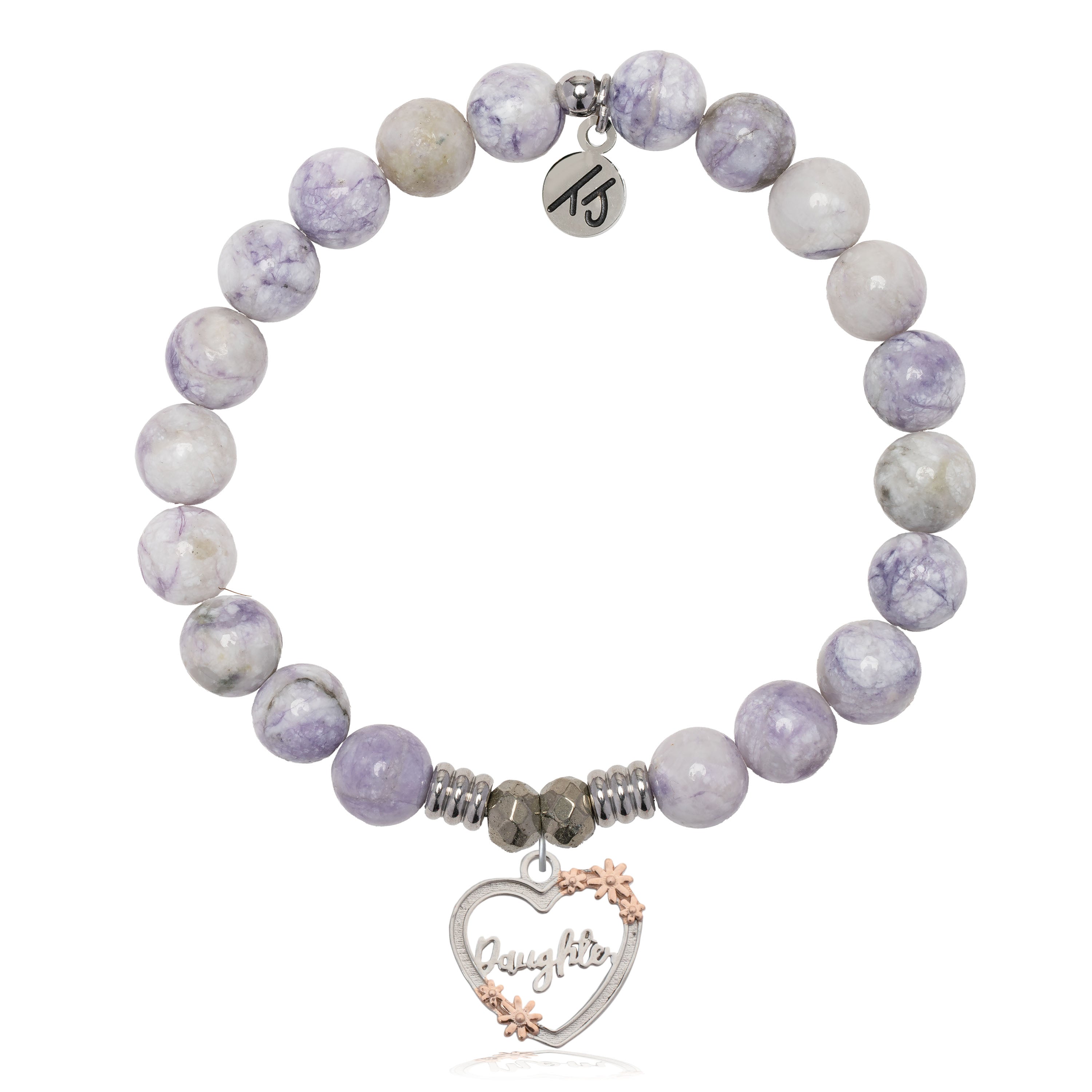 Purple Turquoise Gemstone Bracelet with Heart Daughter Sterling Silver Charm