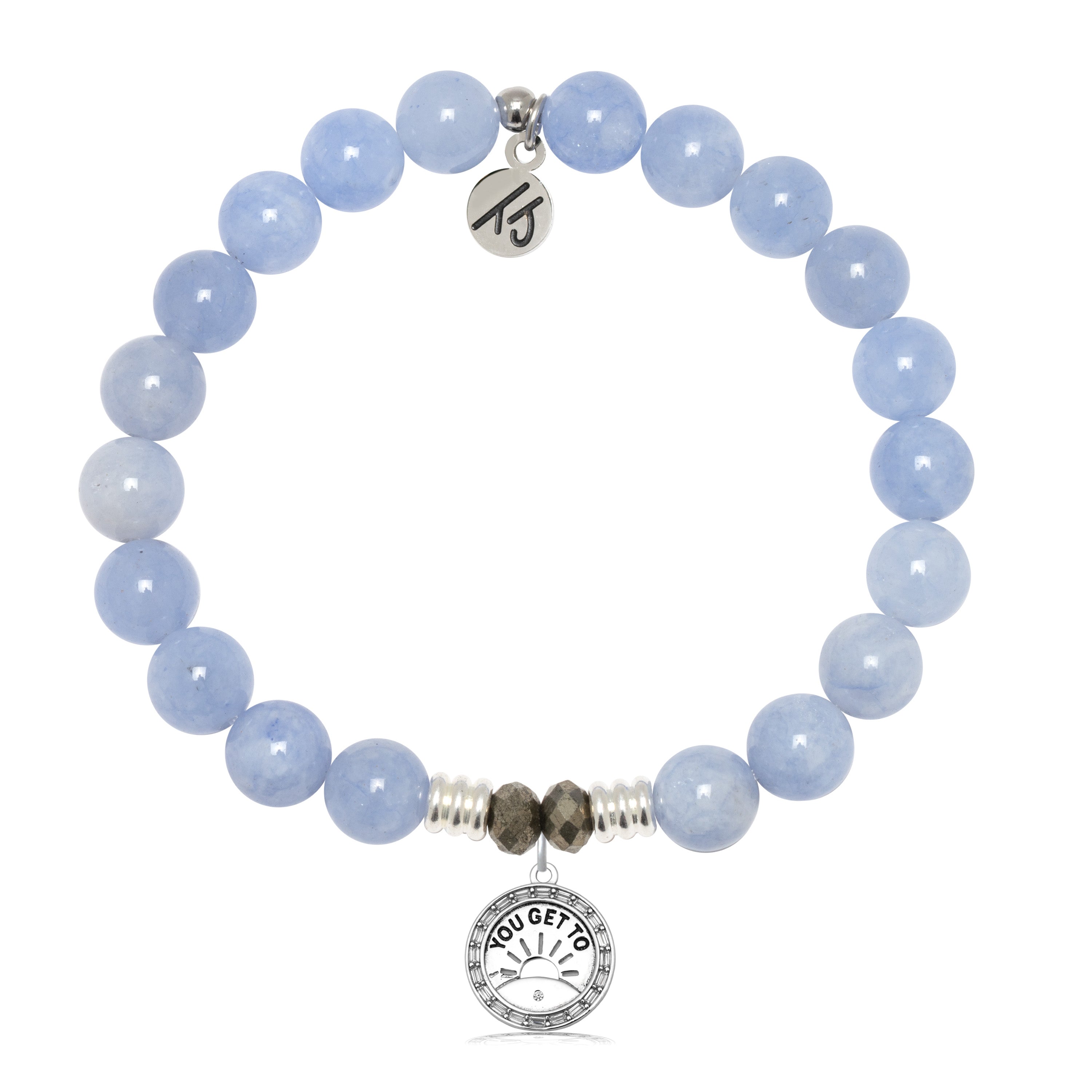 Sky Blue Jade Gemstone Bracelet with You Get To Sterling Silver Charm