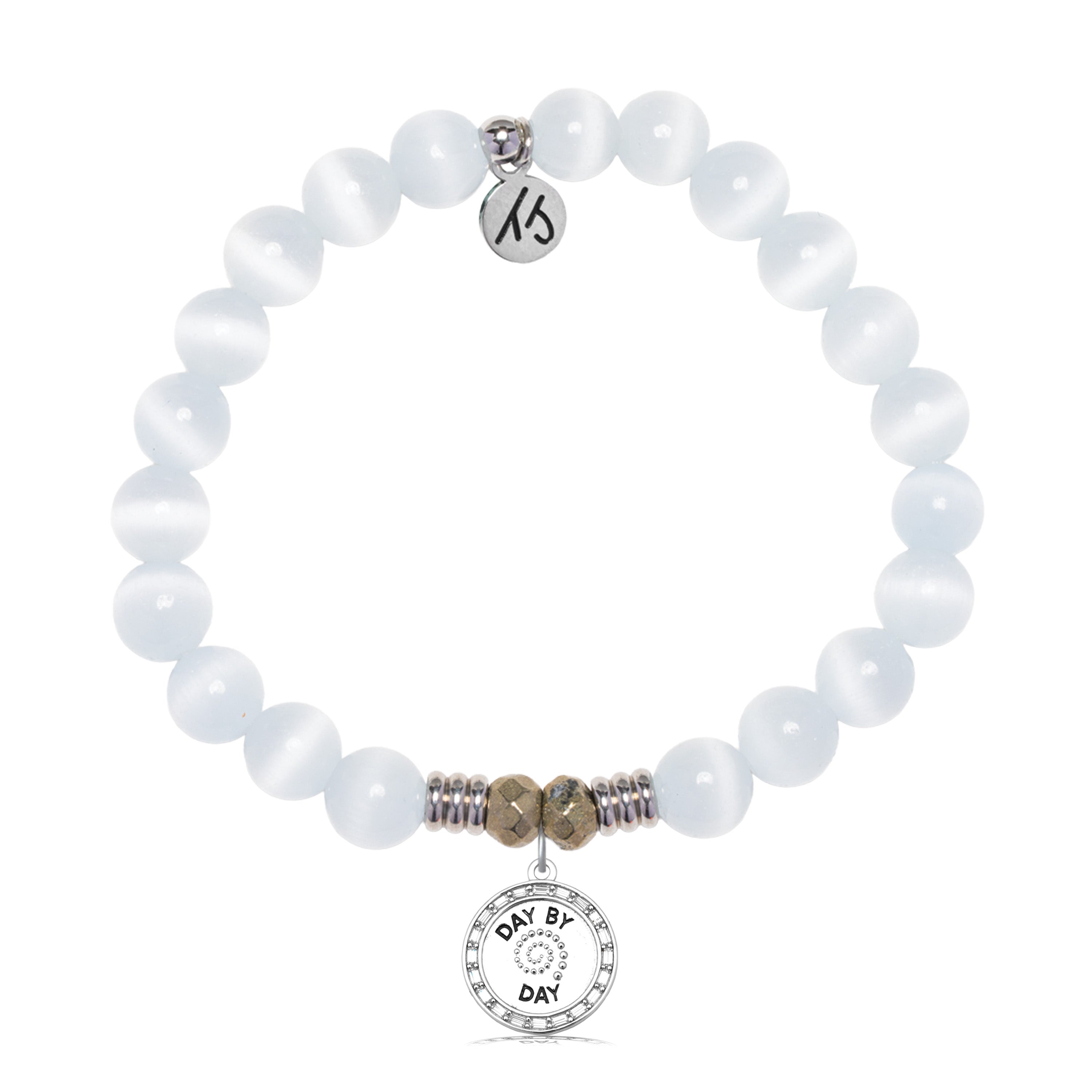 White Cats Eye Gemstone Bracelet with Day by Day Sterling Silver Charm