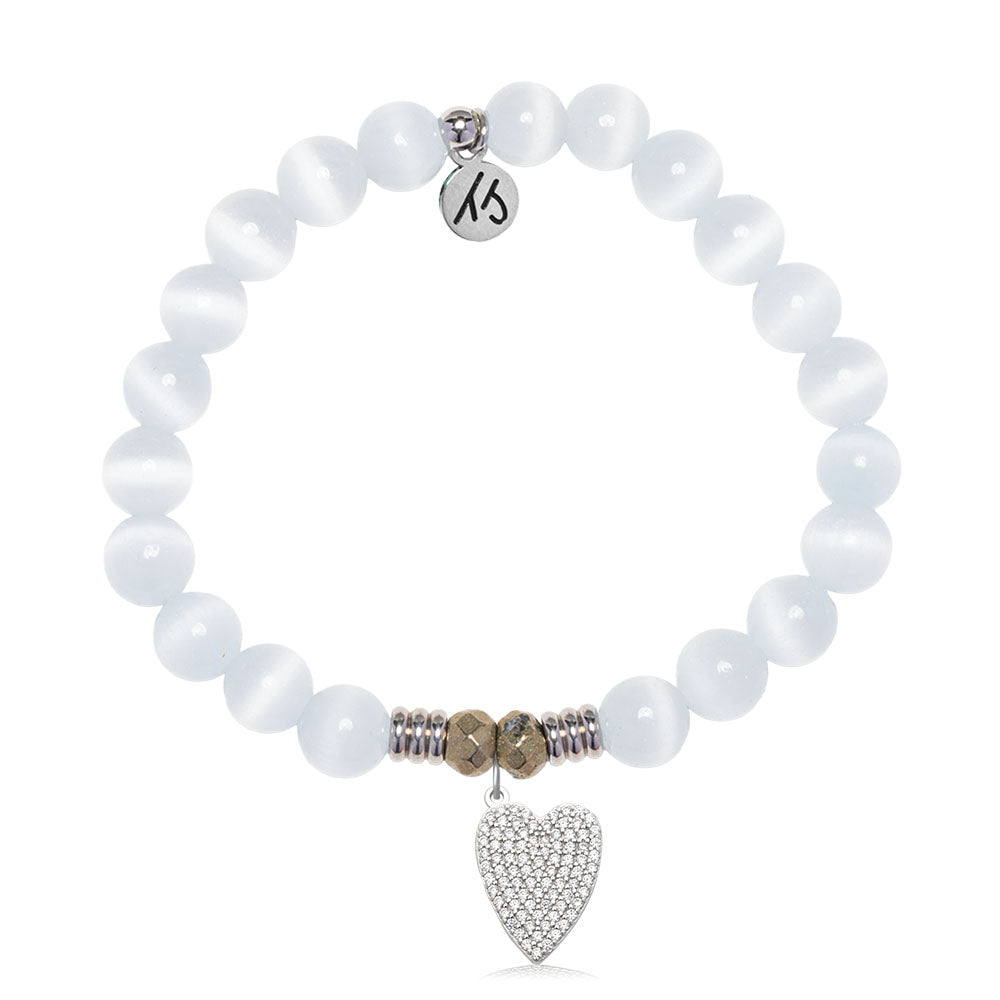 White Cats Eye Gemstone Bracelet with You Are Loved Sterling Silver Charm