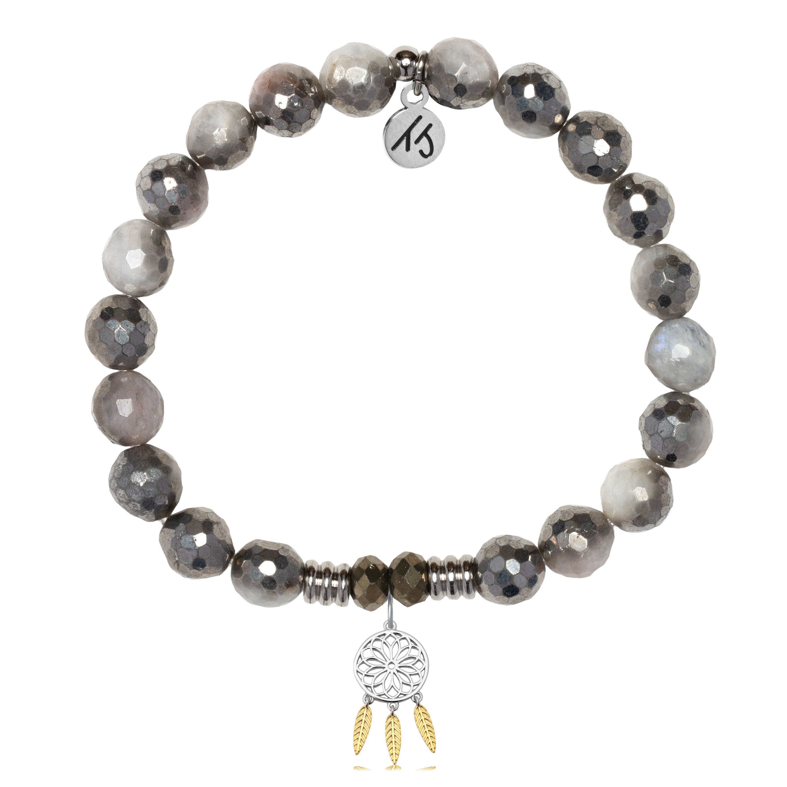 Silver Dipped White Moonstone Gemstone Bracelet with Dreamcatcher Sterling Silver Charm