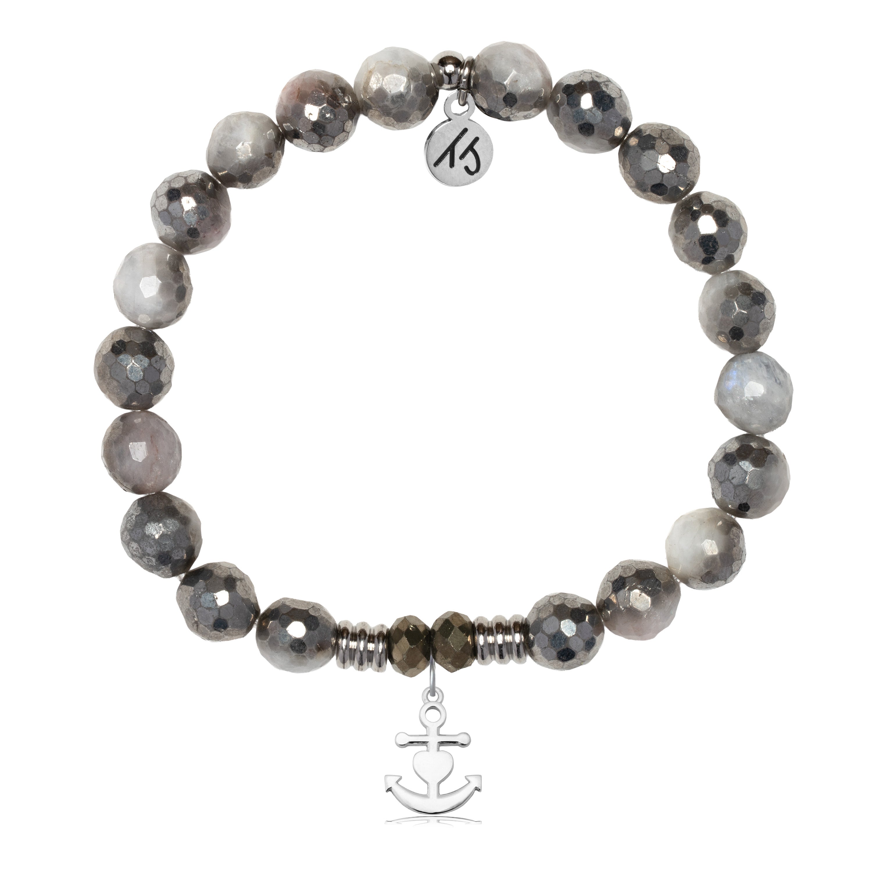 Silver Dipped White Moonstone Gemstone Bracelet with Faith. Hope. Love Sterling Silver Charm