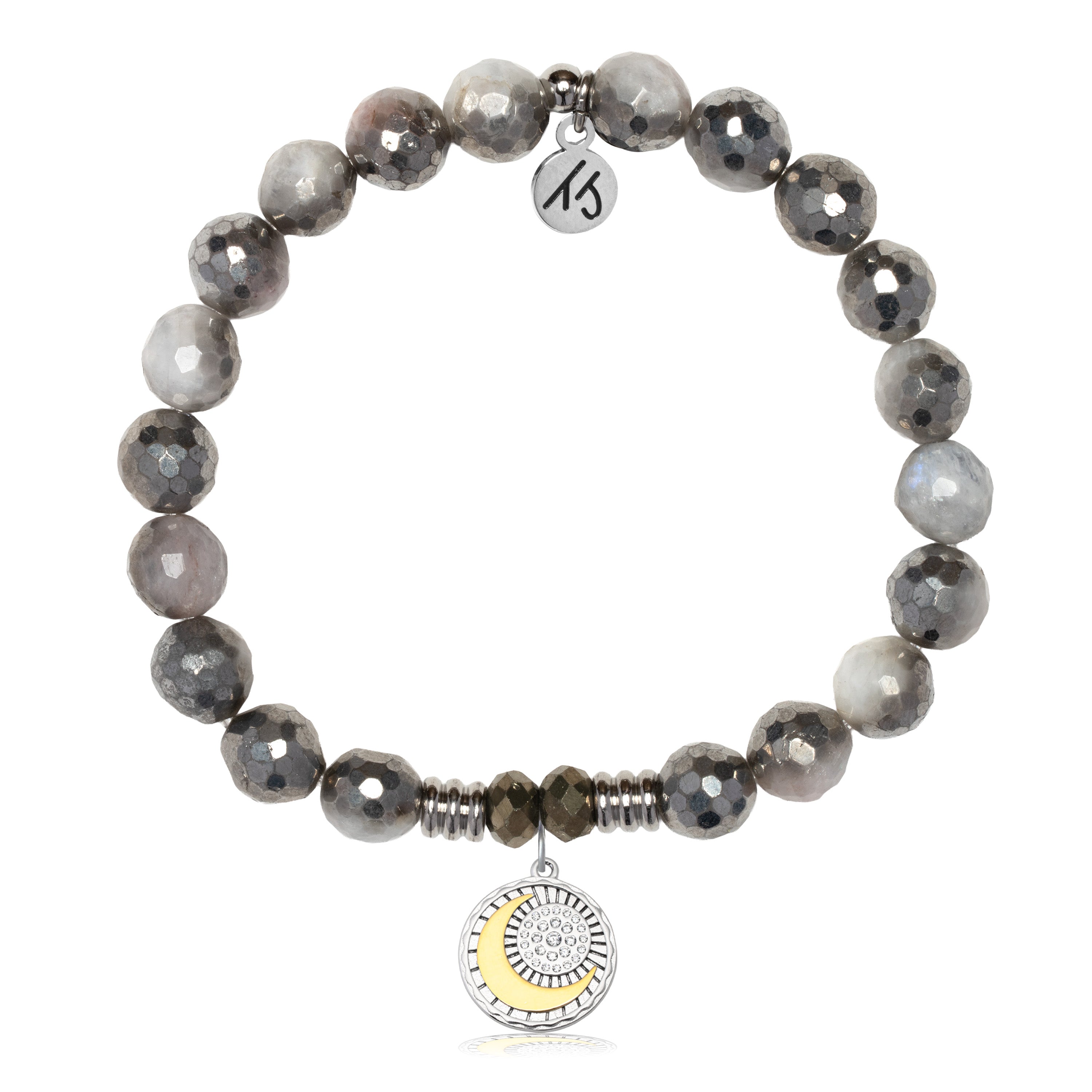 Silver Dipped White Moonstone Gemstone Bracelet with Radiant Soul Sterling Silver Charm
