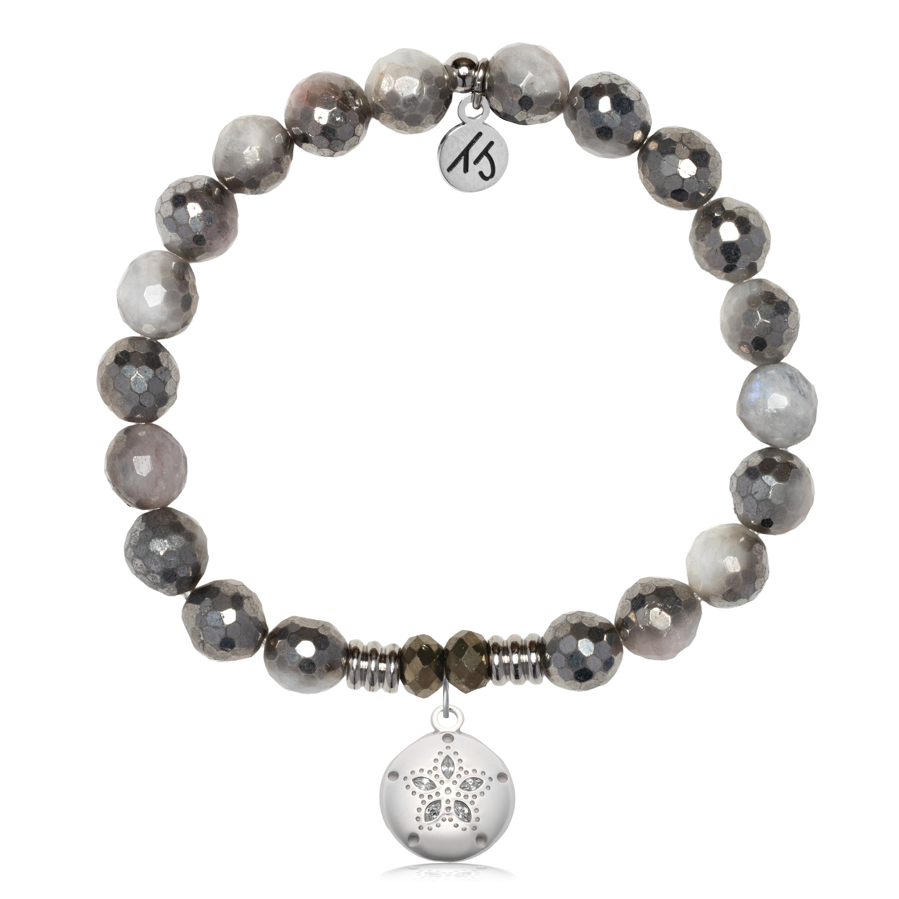 Silver Dipped White Moonstone Gemstone Bracelet with Sand Dollar CZ Sterling Silver Charm