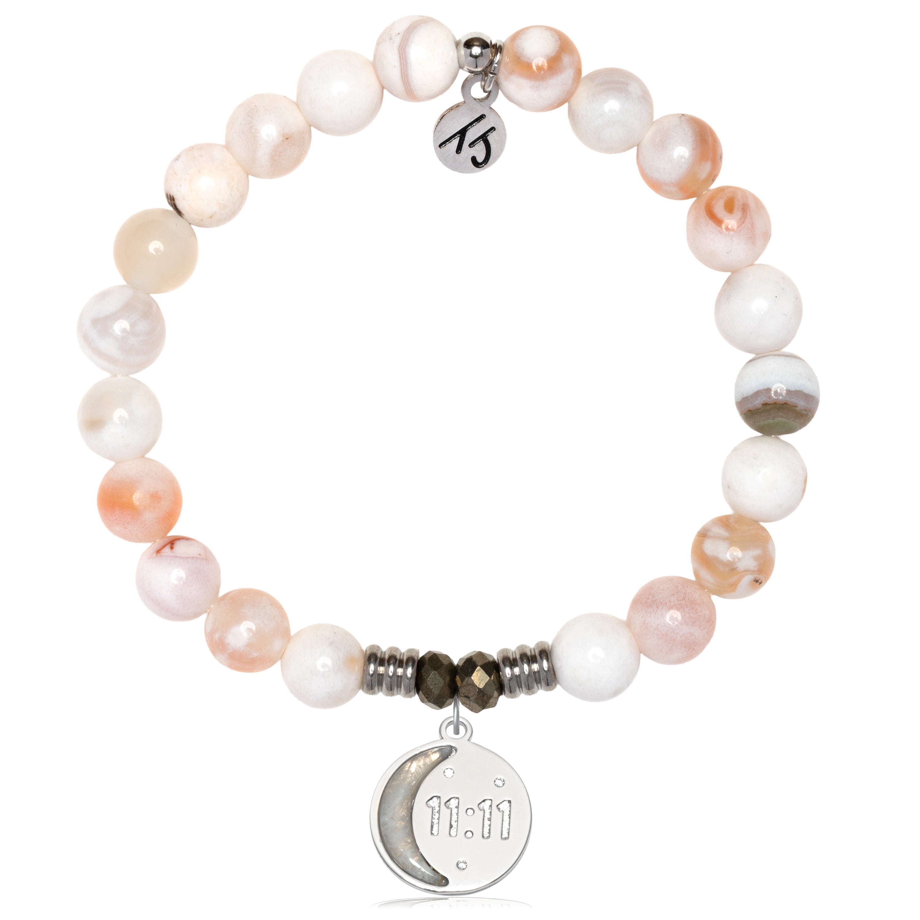 White Natural Agate Gemstone Bracelet with 11:11 Sterling Silver Charm