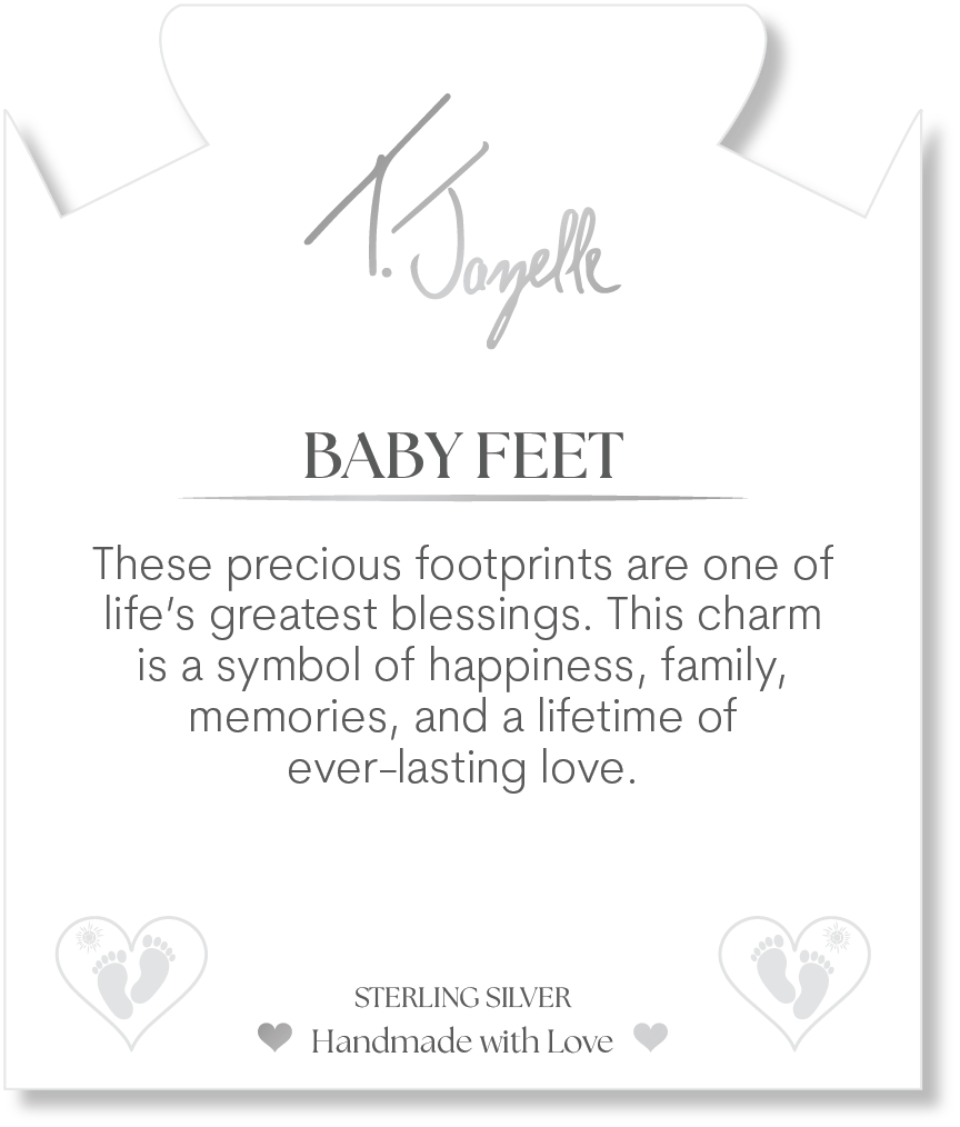 Baby Feet Sterling Silver Charm Bracelet- These precious footprints are one of life’s greatest blessings. This charm is a symbol of happiness, family, memories and a lifetime of ever-lasting love.
