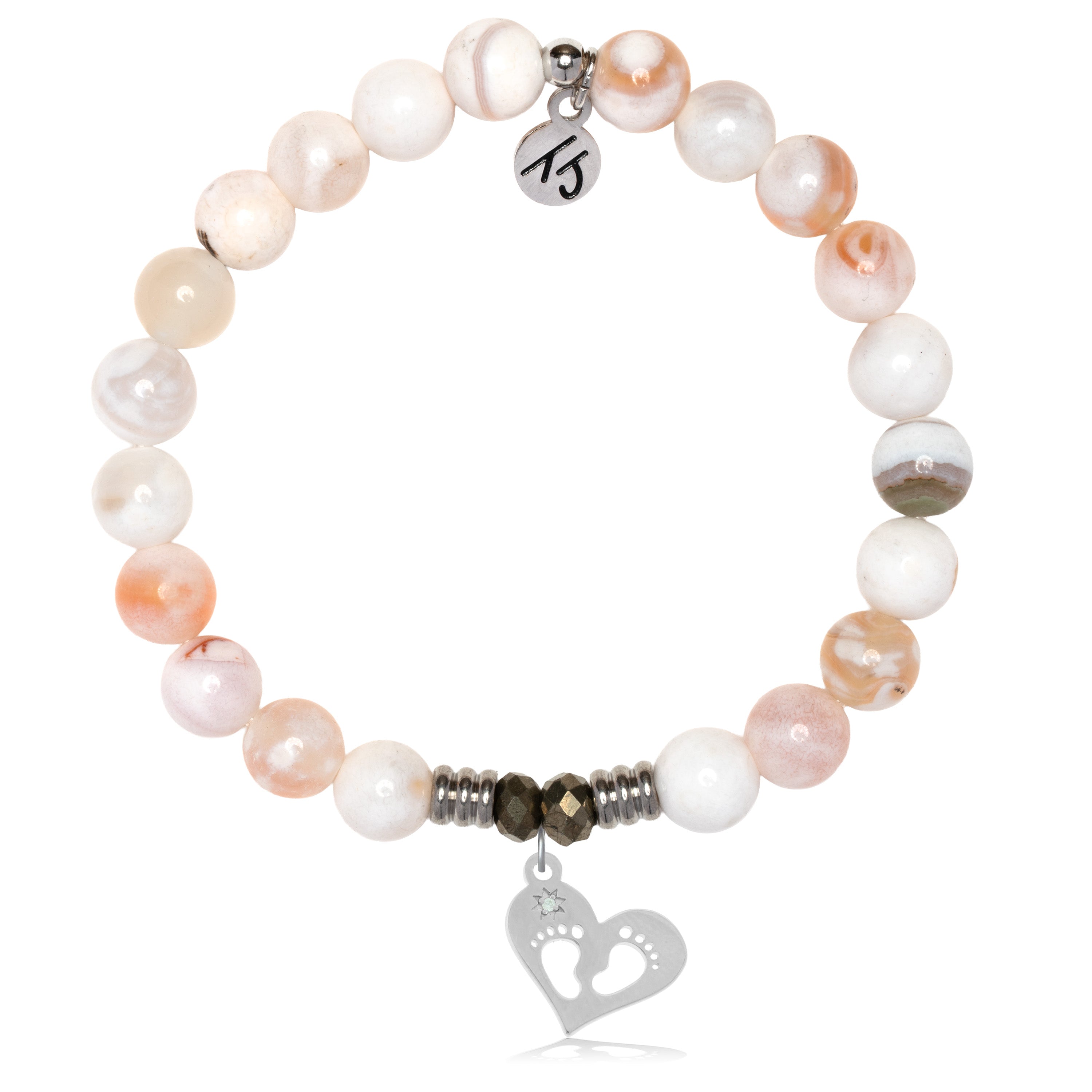 White Natural Agate Gemstone Bracelet with Baby Feet Sterling Silver Charm