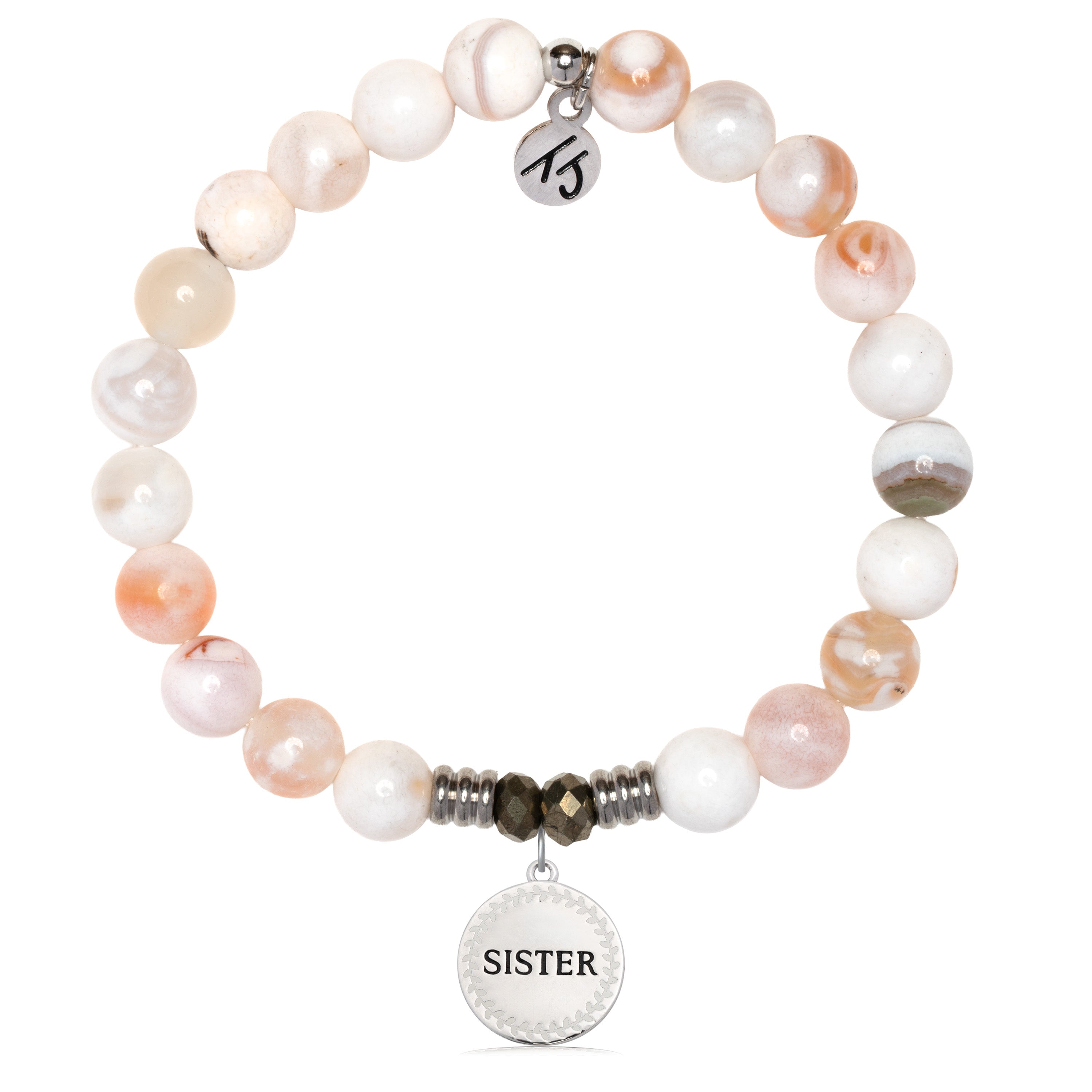 White Natural Agate Gemstone Bracelet with Endless Love Sister Sterling Silver Charm