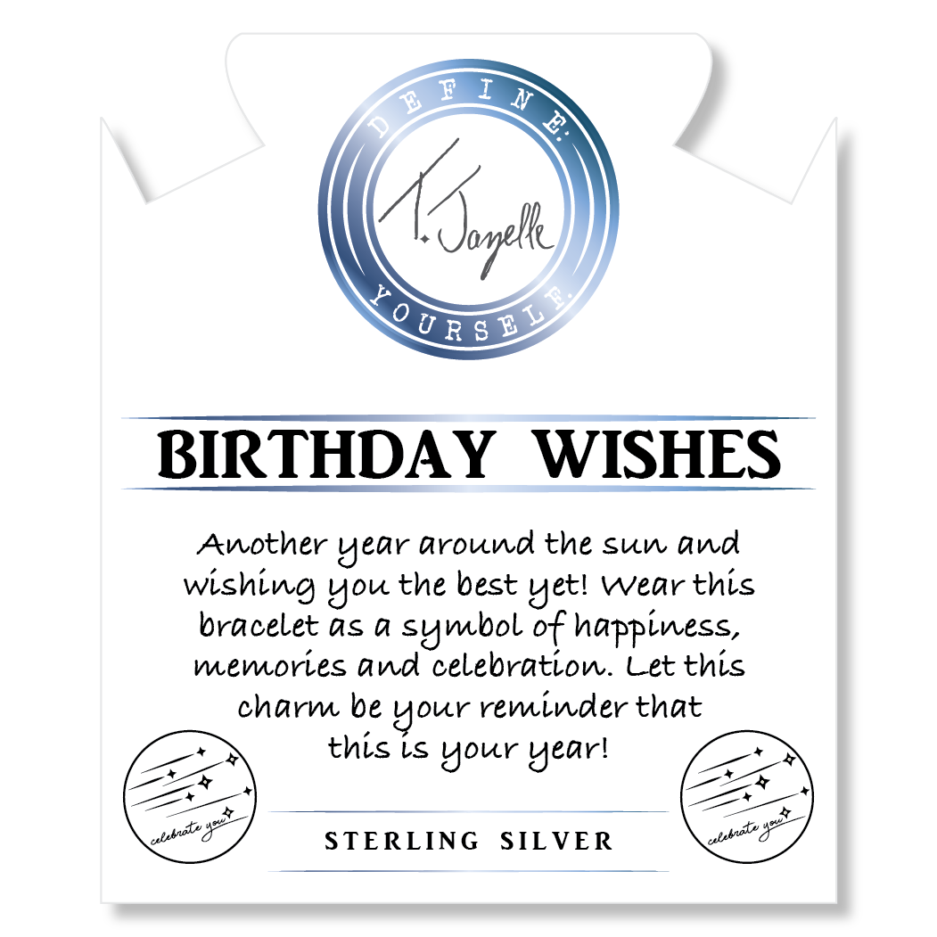Blue Gold Agate Gemstone Bracelet with Birthday Wishes Sterling Silver Charm