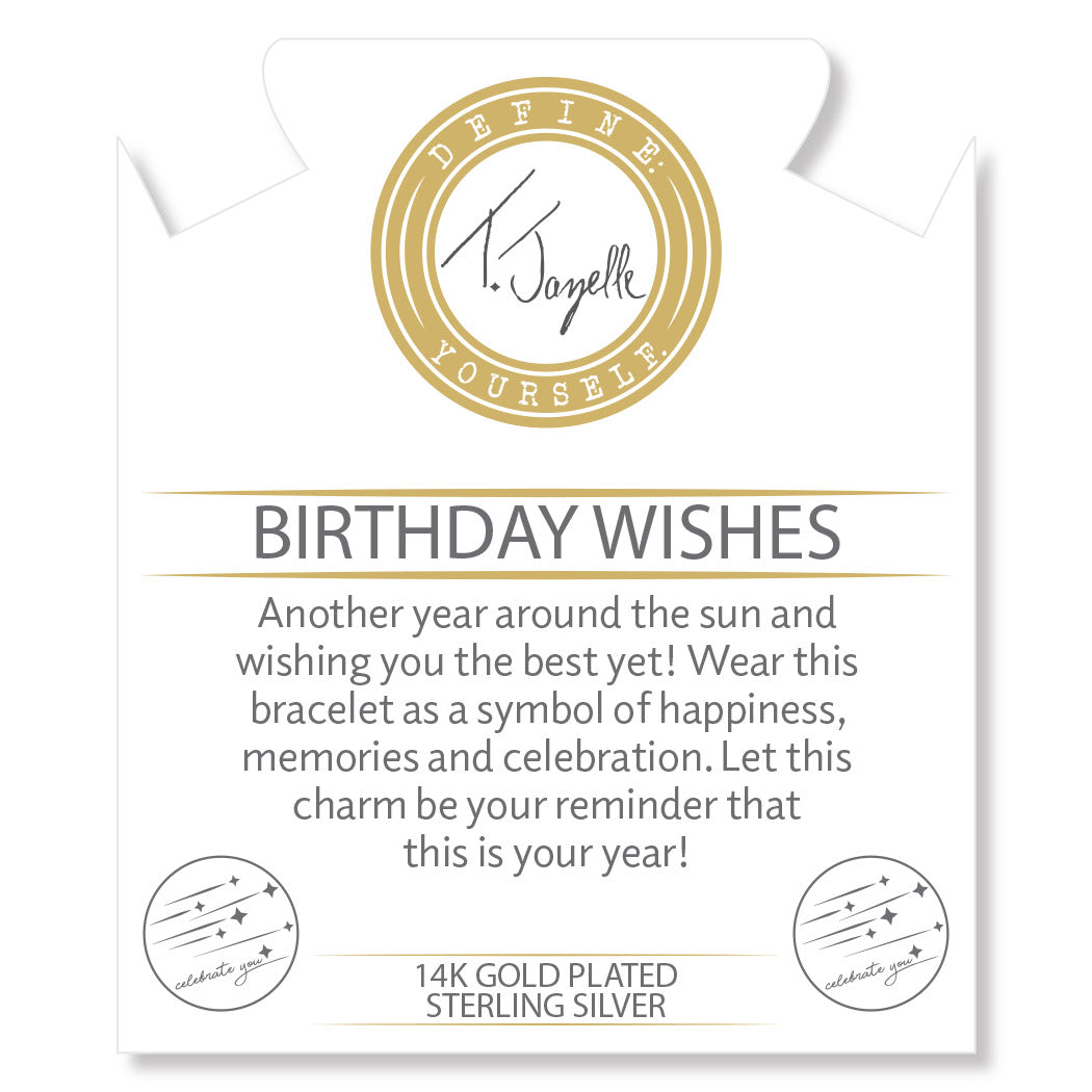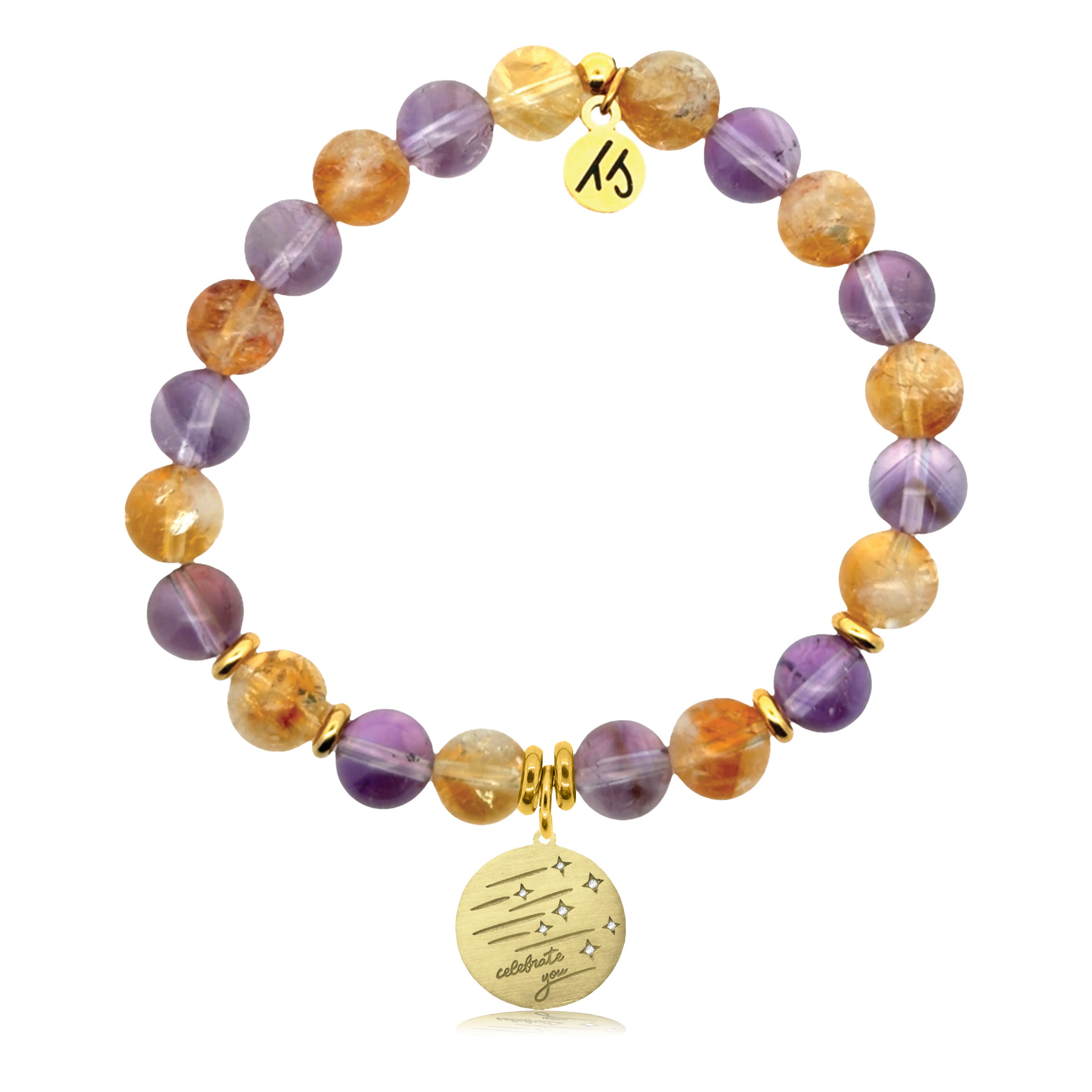 Gold Charm Collection - Amethyst Citrine Gemstone Bracelet with Birthday Wishes Gold Charm