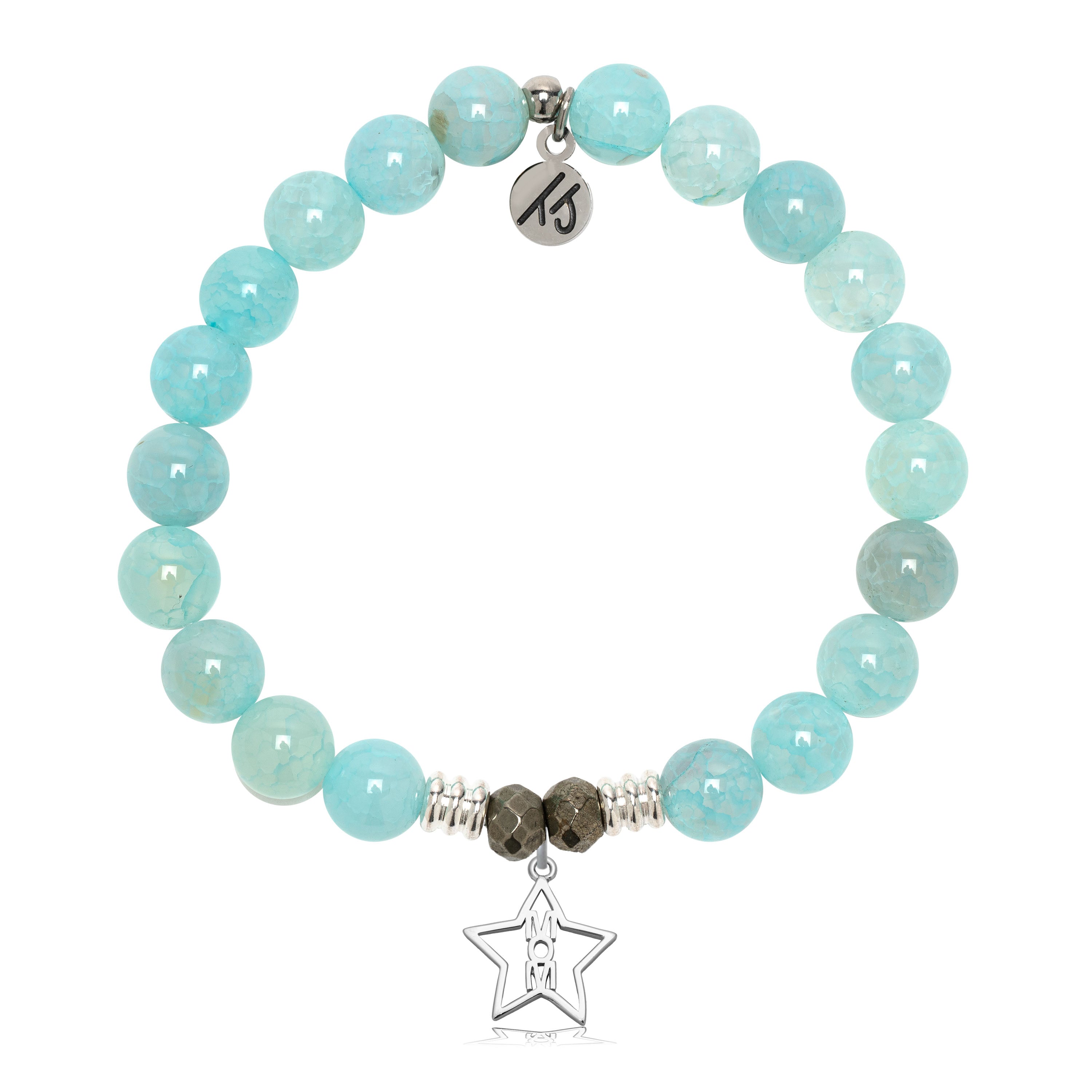 Aqua Fire Agate Gemstone Bracelet with Mom Star Sterling Silver Charm