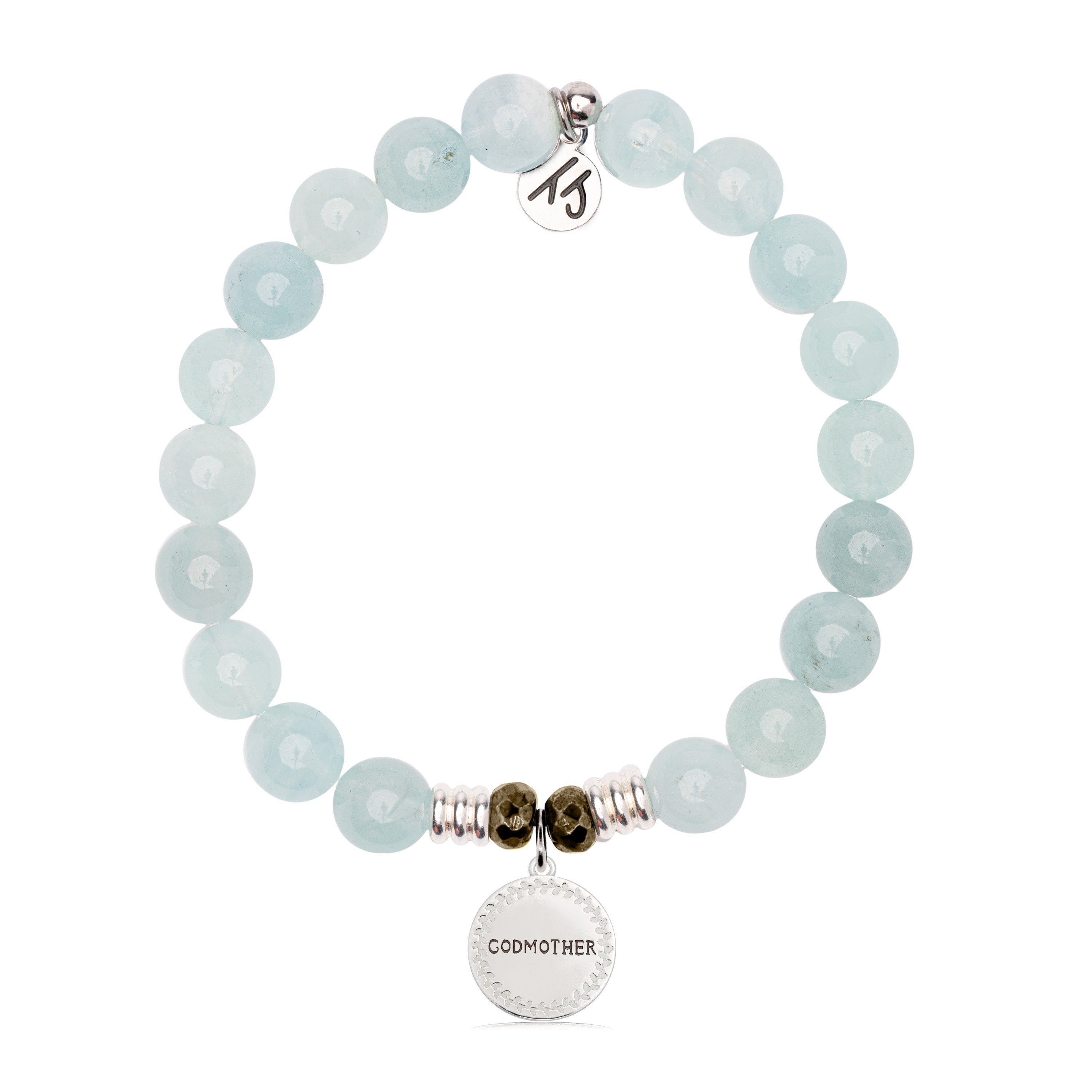 Blue Aquamarine Gemstone Bracelet with Endless Love Godmother Sterling Silver Charm