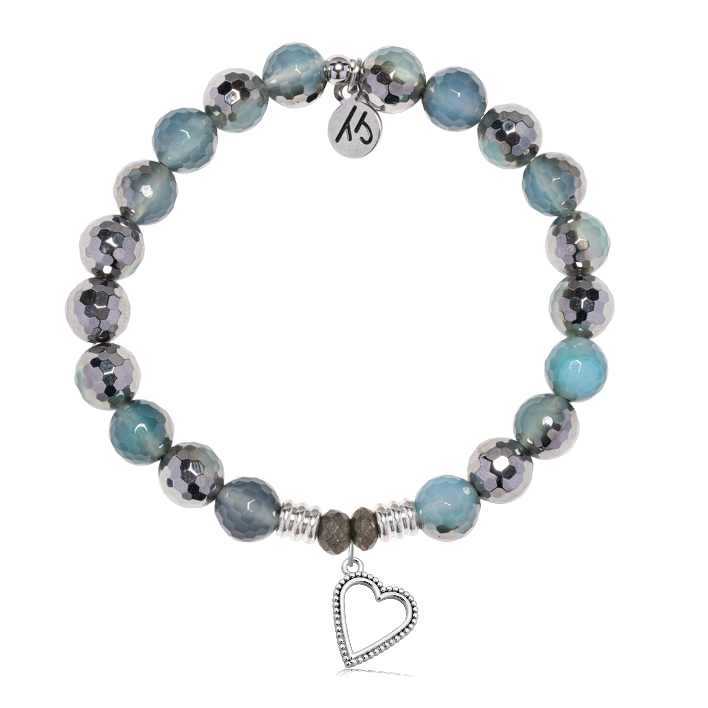 Blue Silver Agate Gemstone Bracelet with Everlasting Love Sterling Silver Charm