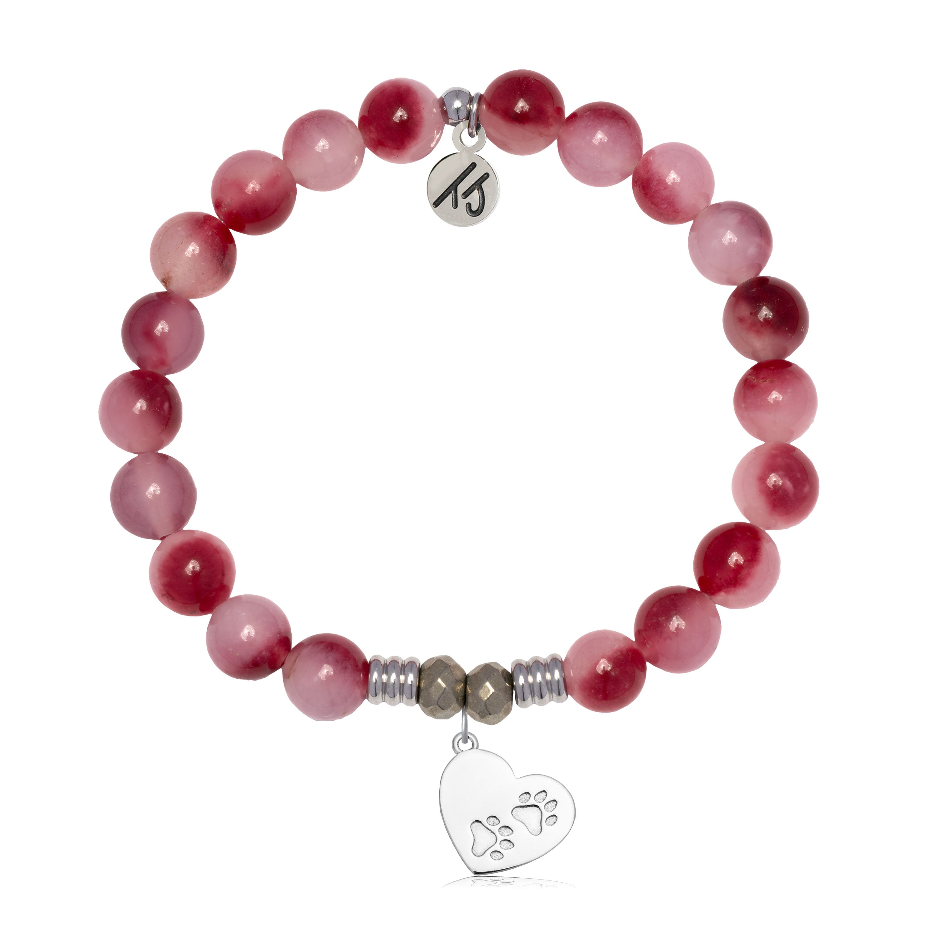 Cherry Jade Gemstone Bracelet with Paws of Love Sterling Silver Charm