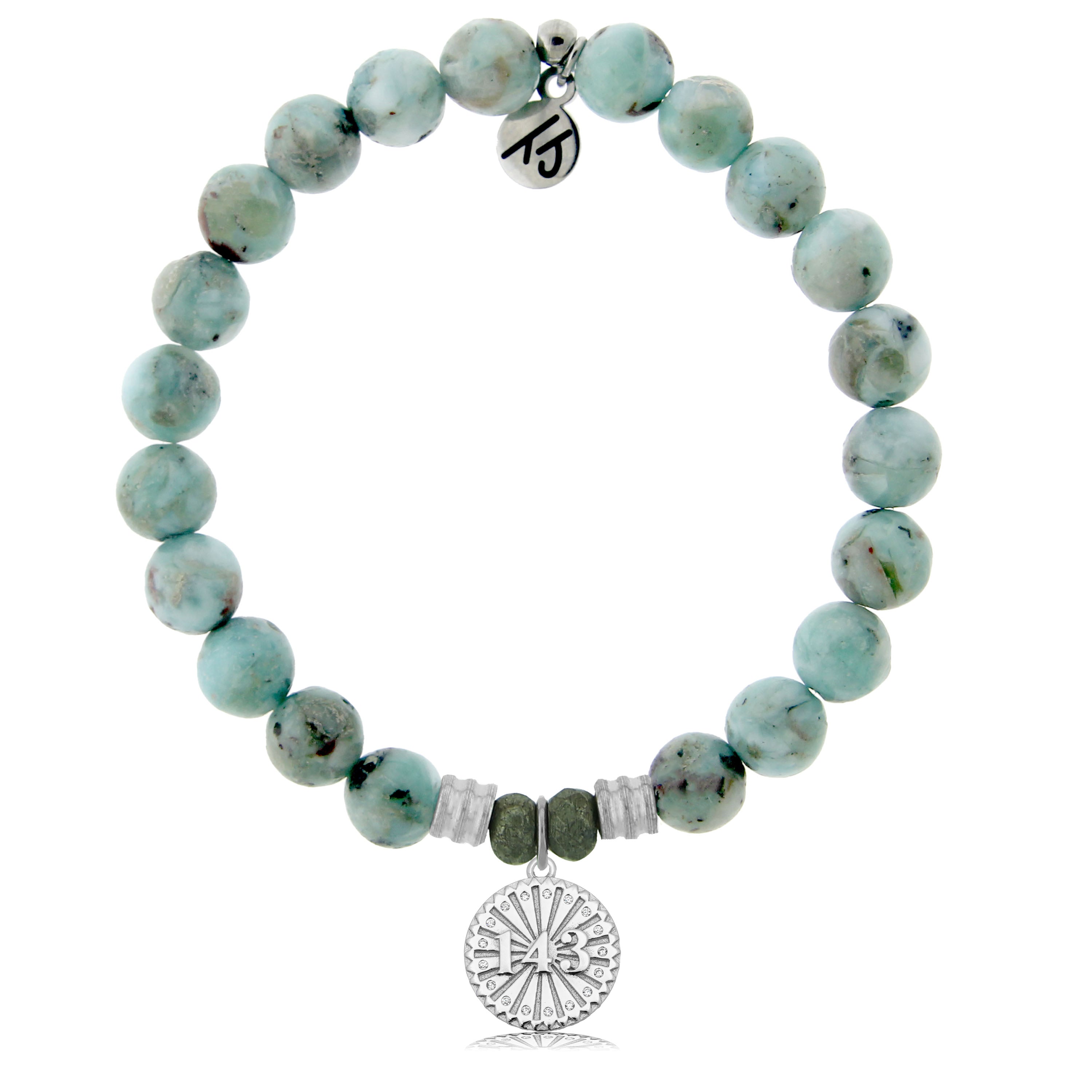 Larimar Gemstone Bracelet with I Love You Sterling Silver Charm