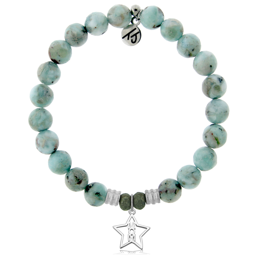 Larimar Gemstone Bracelet with Mom Star Sterling Silver Charm