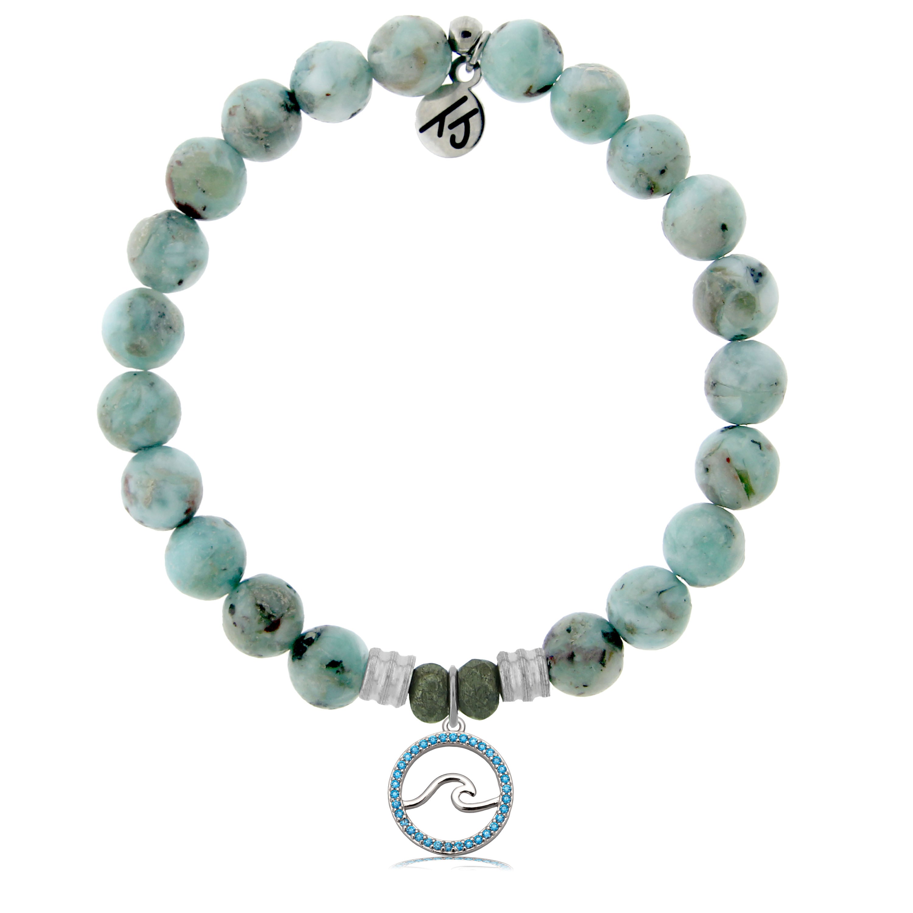 Larimar Gemstone Bracelet with Serenity Wave Sterling Silver Charm