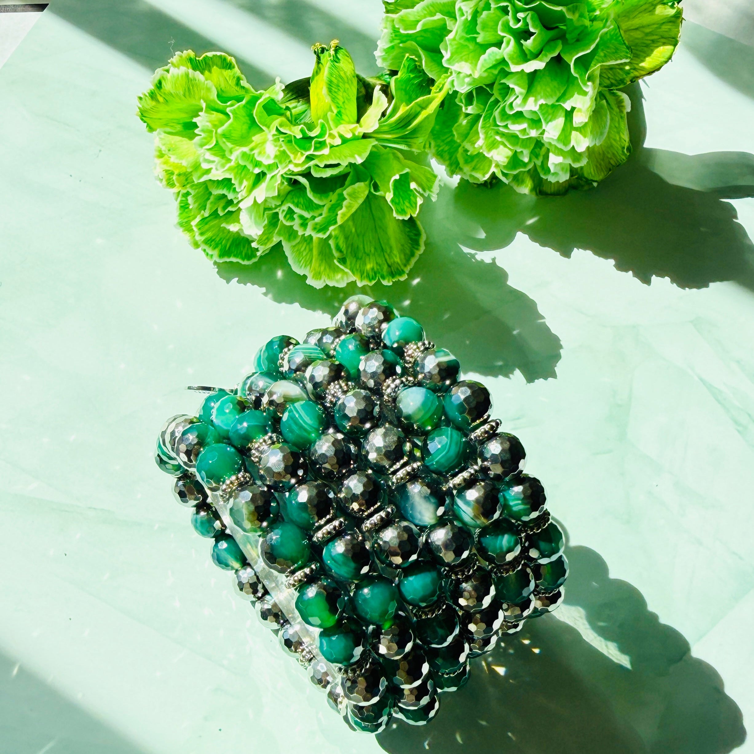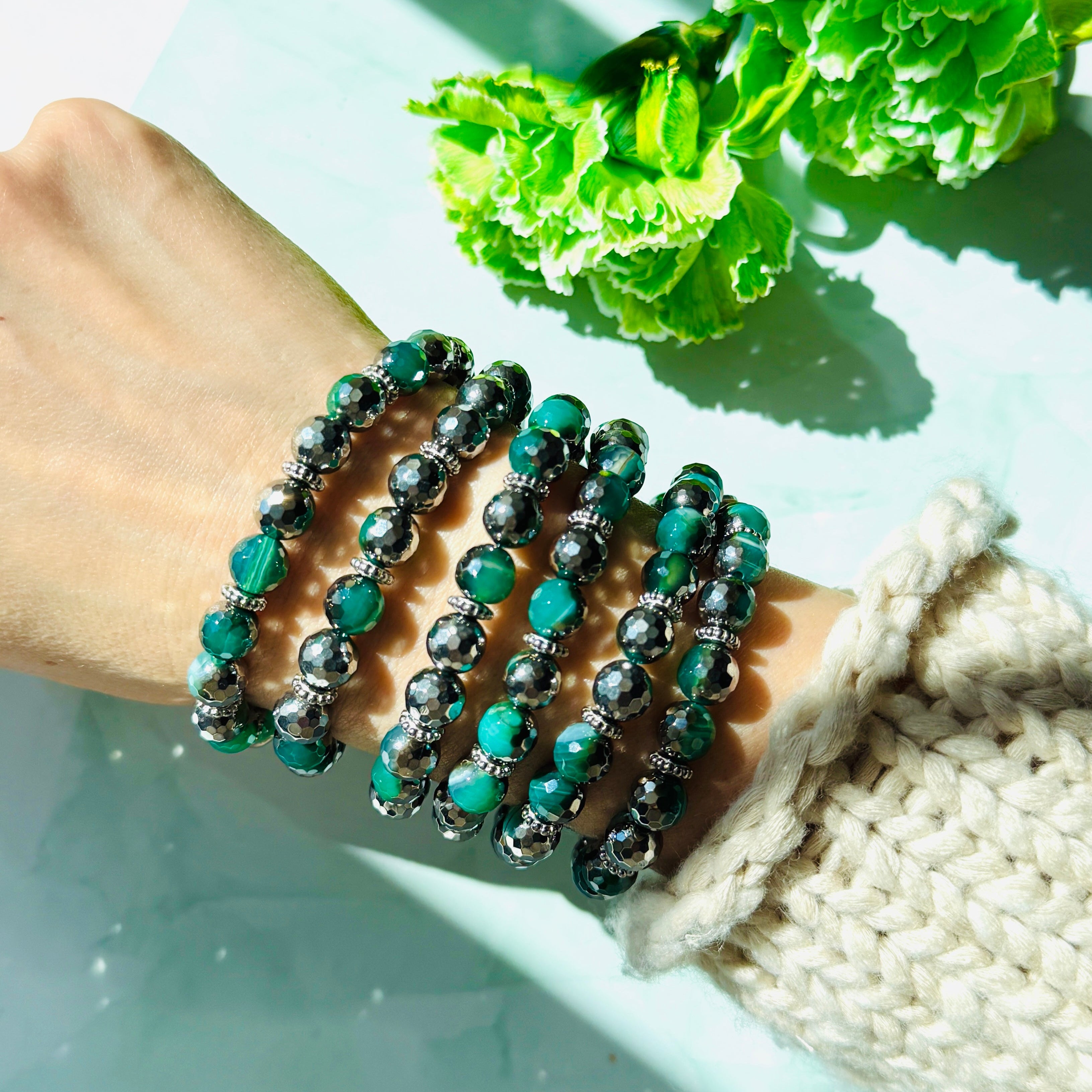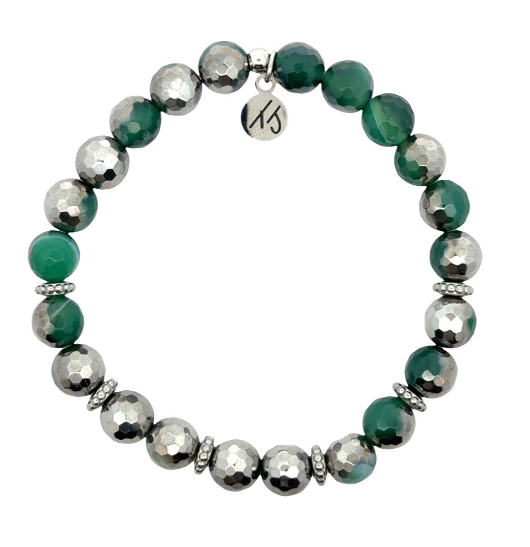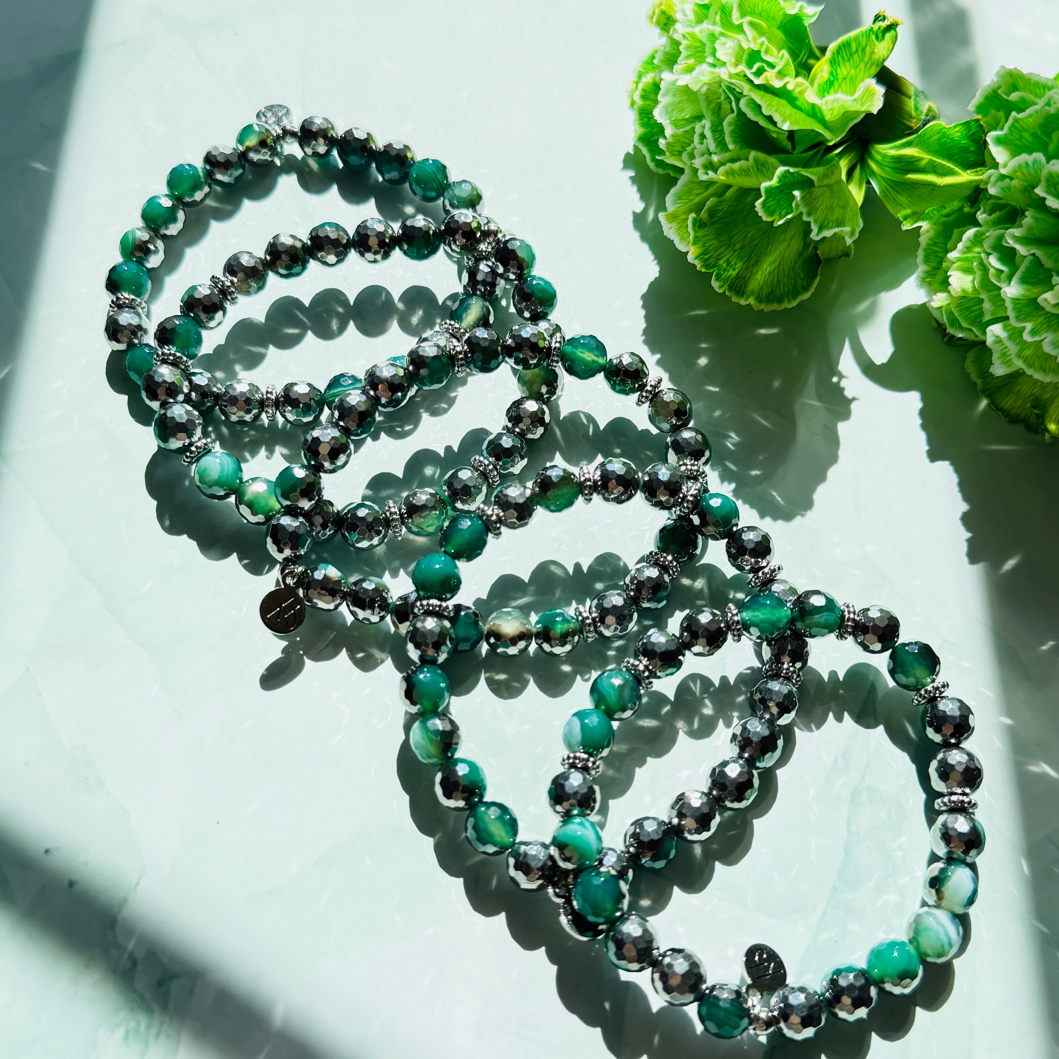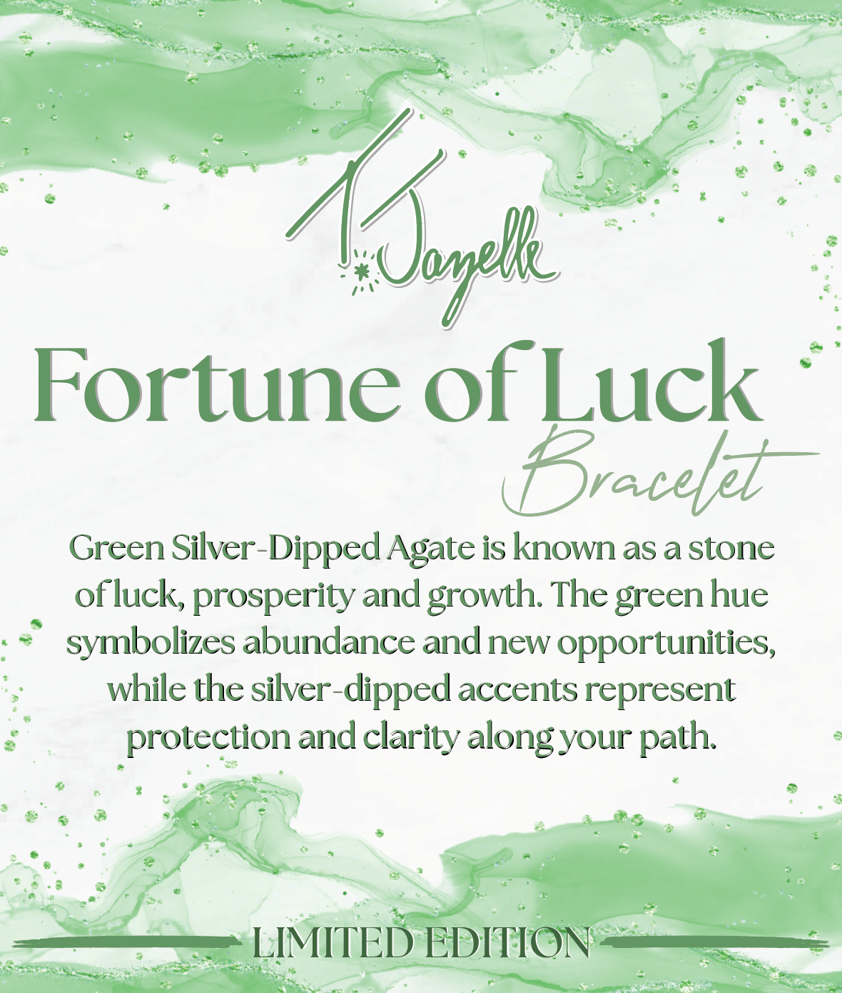 Fortune of Luck Limited Edition Bracelet- Green Silver Dipped Agate is known as a stone of luck, prosperity and growth. The Green hue symbolizes abundance and new opportunities, while the silver-dipped accents represent protection and clarity along your path.