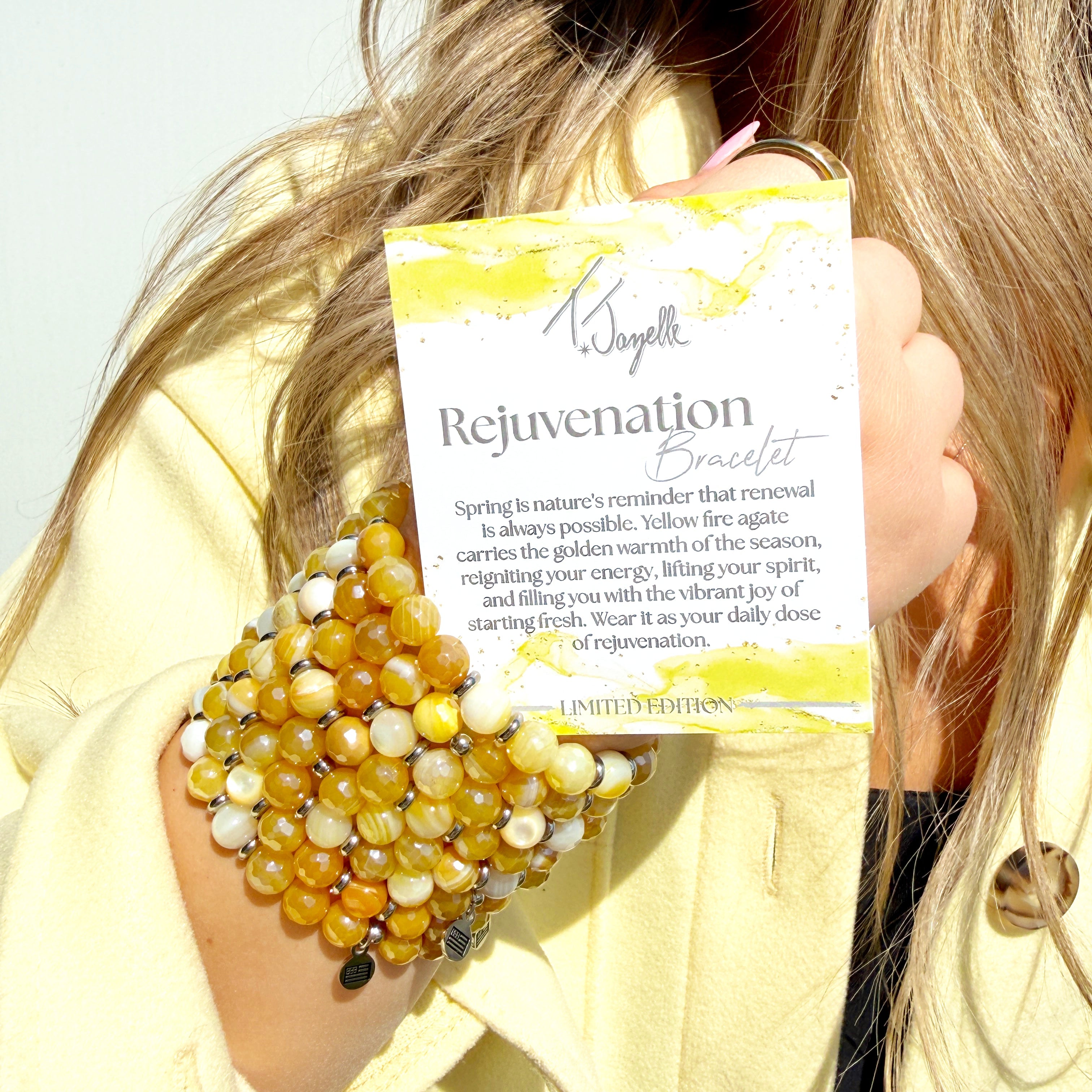 Rejuvenation Limited Edition Bracelet- Spring is nature's reminder that renewal is always possible. Yellow Fire Agate carries the golden warmth of the season, reigniting your energy, lifting your spirit, and filling you with the vibrant joy of starting fresh. Wear it as your daily does of Rejuvenation.