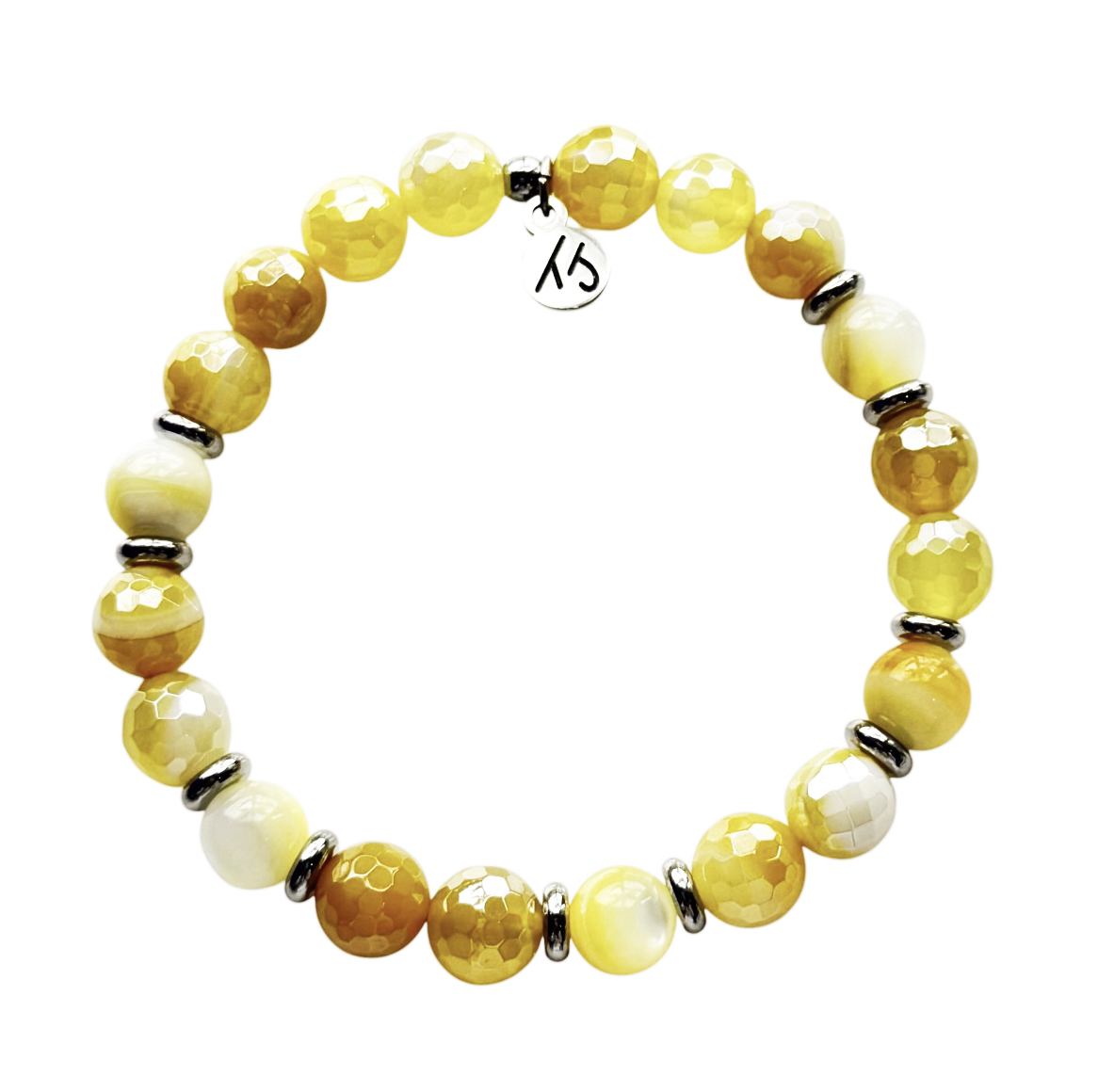 -Yellow Fire Agate gemstones used with bracelet featuring Yellow Shell Gemstone accents