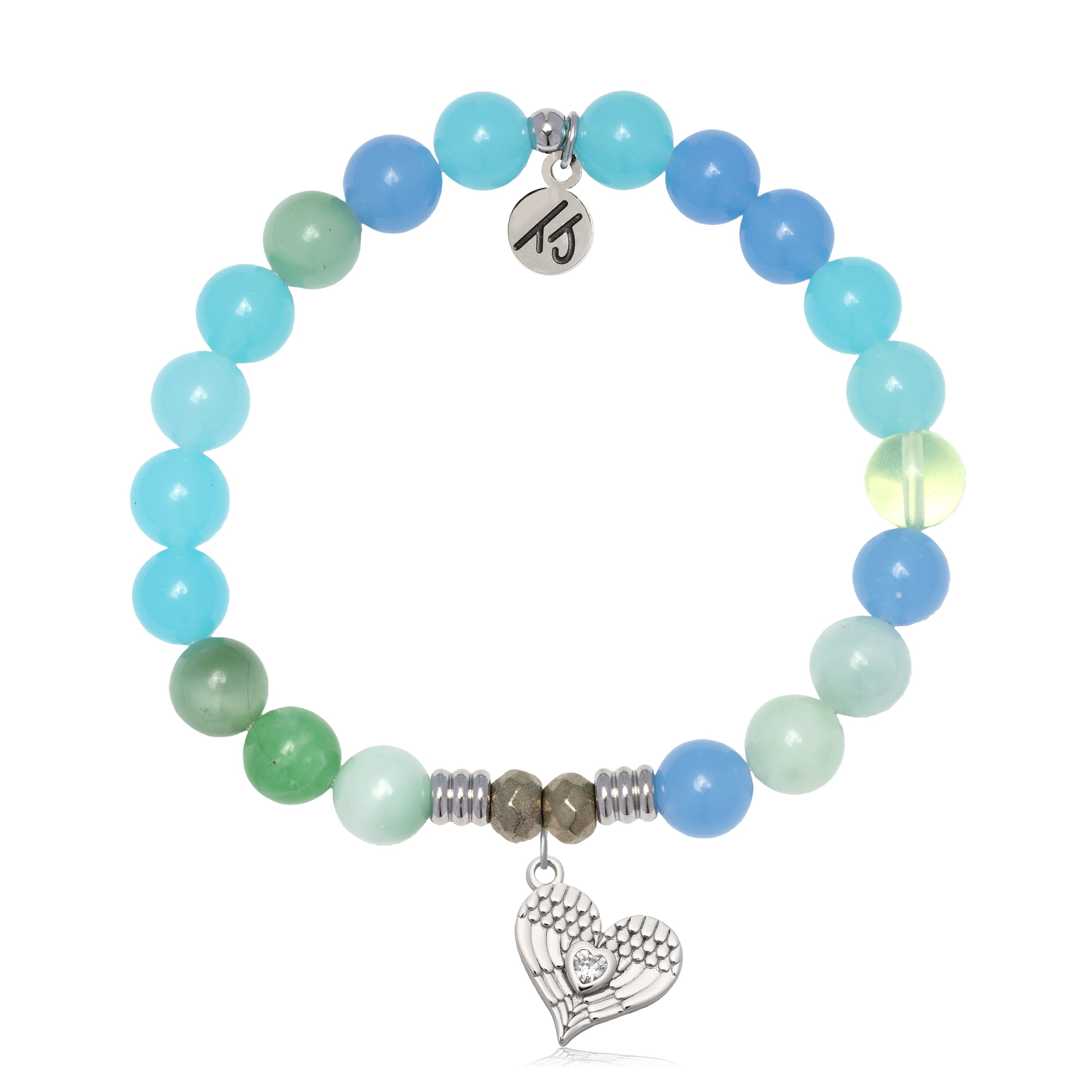 Multi Blue Jade Gemstone Bracelet with Angel Love Sterling Silver Charm