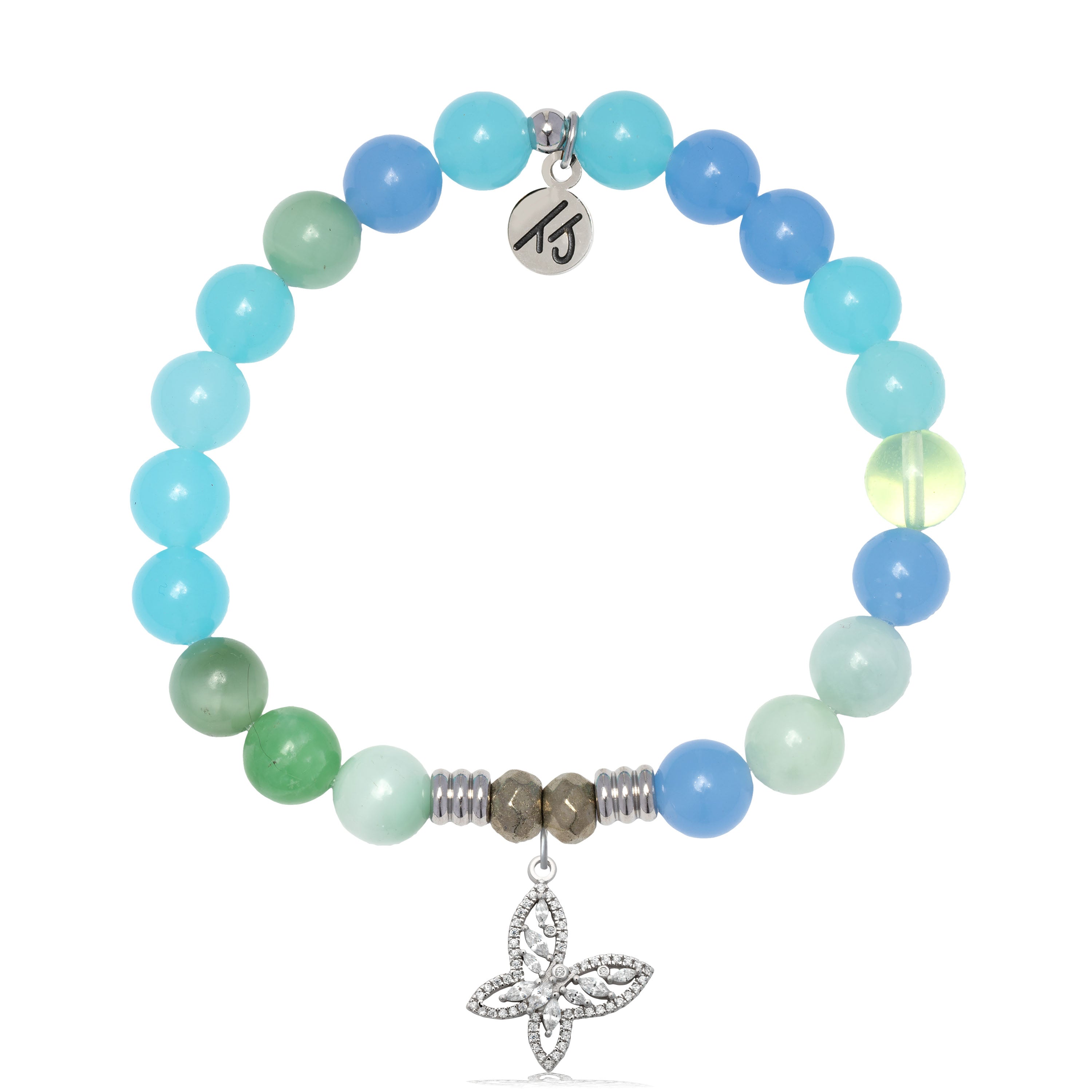 Multi Blue Jade Gemstone Bracelet with Butterfly CZ Sterling Silver Charm