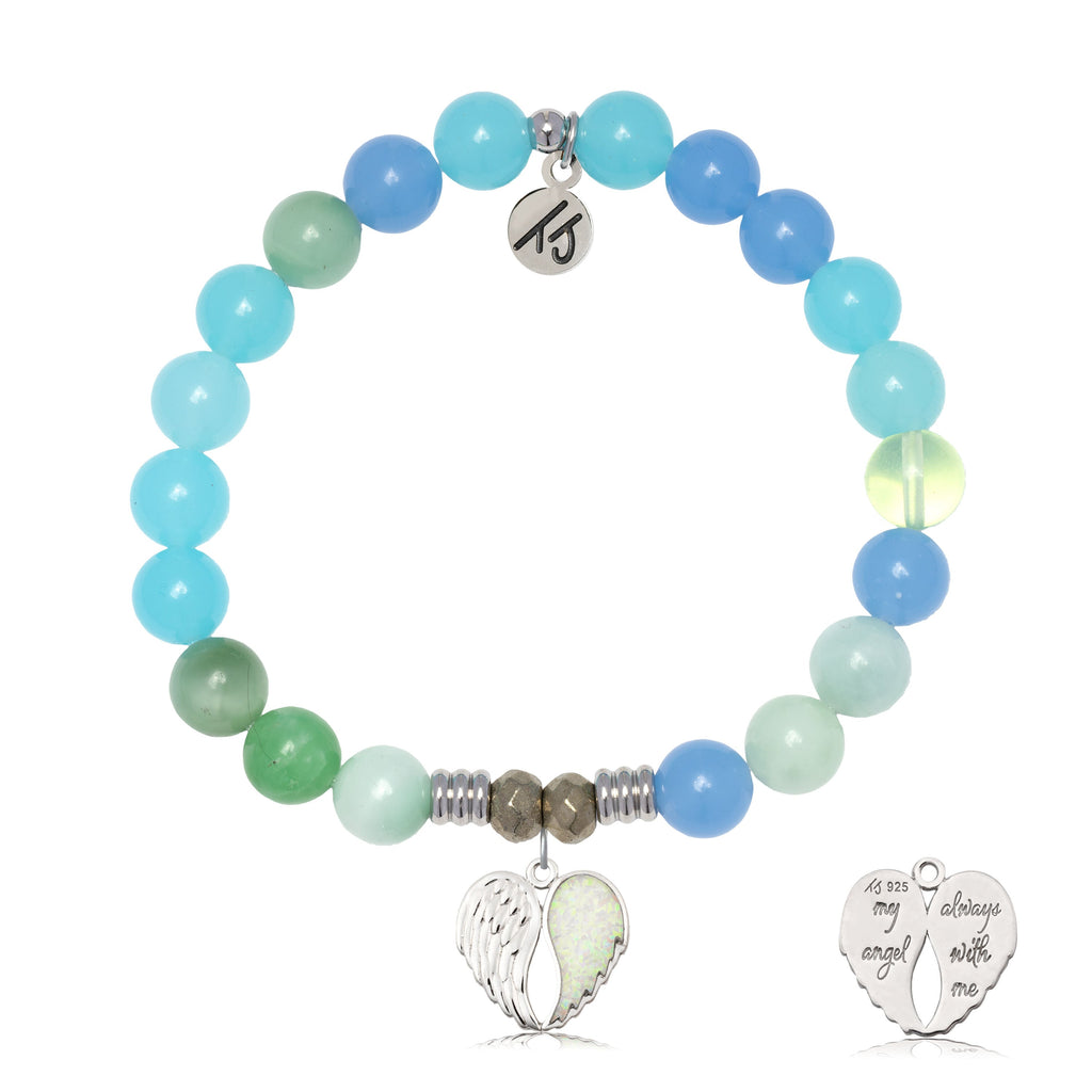 Multi Blue Jade Gemstone Bracelet with My Angel Sterling Silver Charm