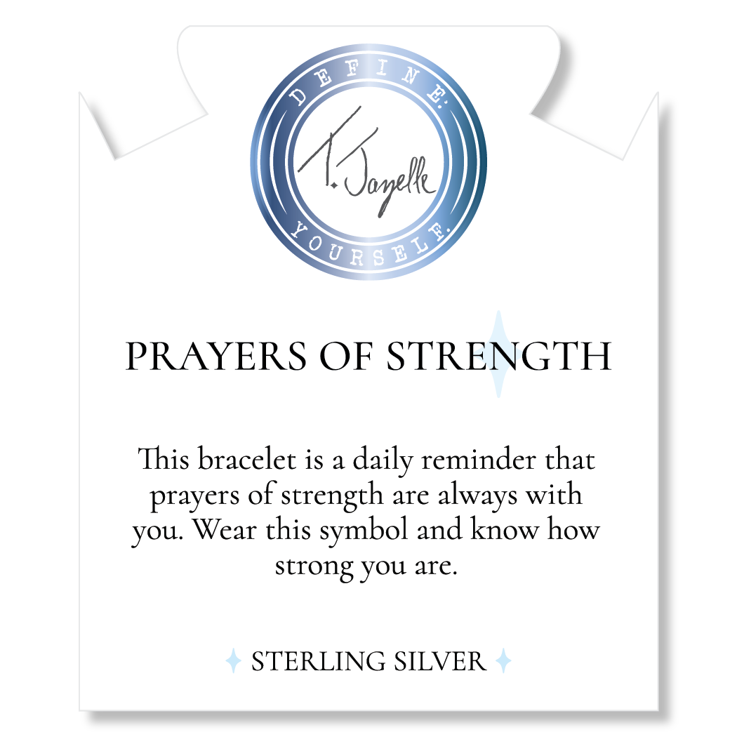 Multi Blue Jade Gemstone Bracelet with Prayers of Strength Sterling Silver Charm