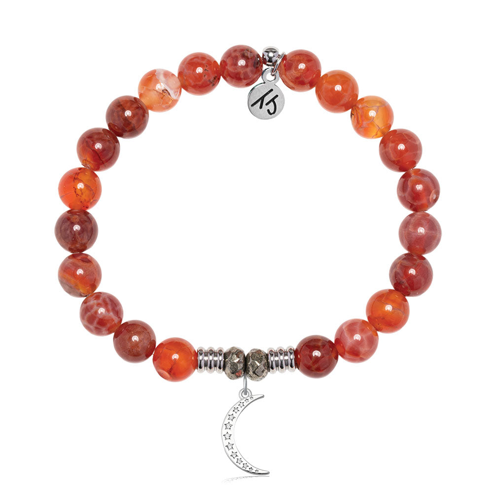 Orange Fire Agate Gemstone Bracelet with Friendship Moon Sterling Silver Charm