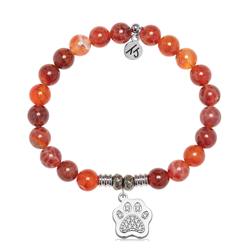 Orange Fire Agate Gemstone Bracelet with Paw CZ Sterling Silver Charm