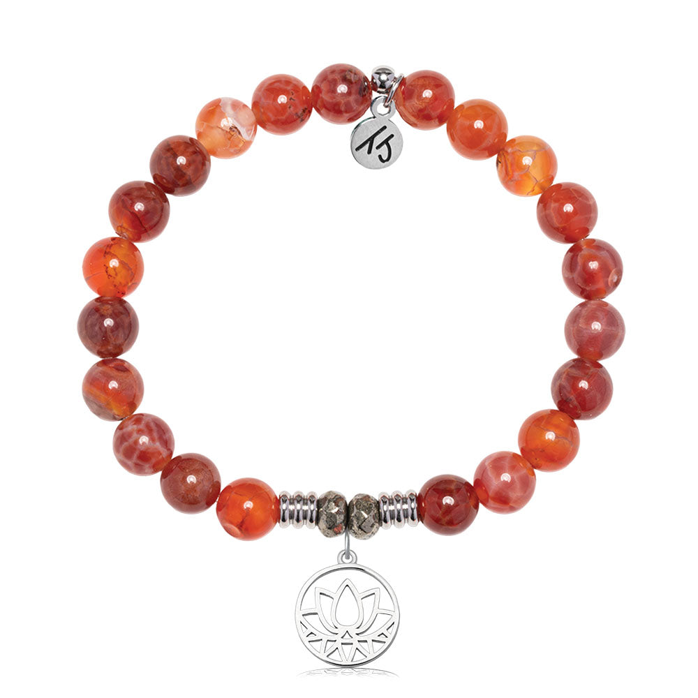 Orange Fire Agate Gemstone Bracelet with Resilience Sterling Silver Charm