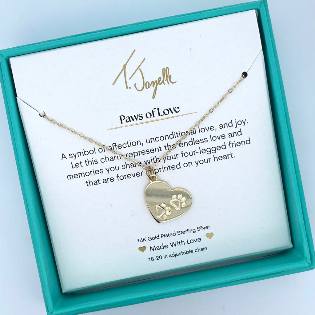 Paws of Love Gold Charm Necklace - A symbol of affection, unconditional love and joy. Let this charm represent the endless love and memories you share with your four-legged friend that are forever imprinted on your heart.