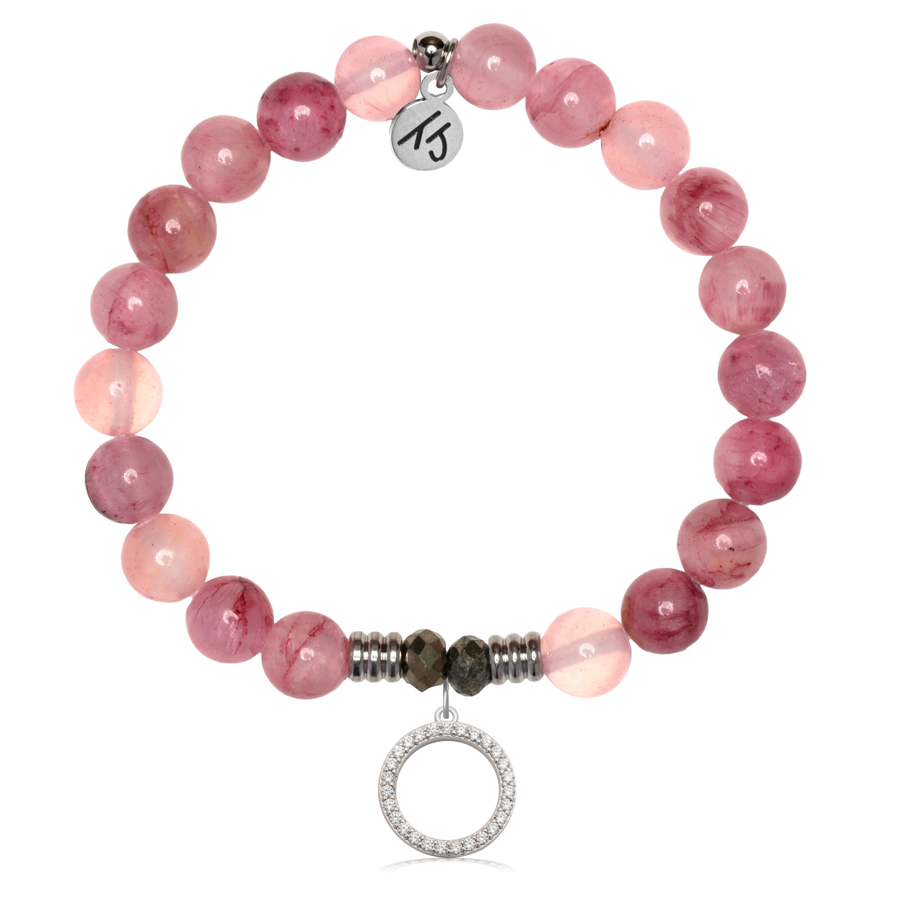 Pink Chalcedony Gemstone Bracelet with Good Karma Sterling Silver Charm