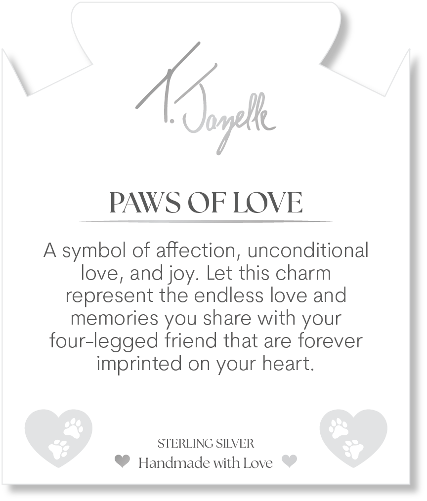 Paws of Love Sterling Silver Charm- A symbol of affection, unconditional love and joy. Let this charm represent the endless love and memories you share with your four-legged friend that are forever imprinted on your heart.