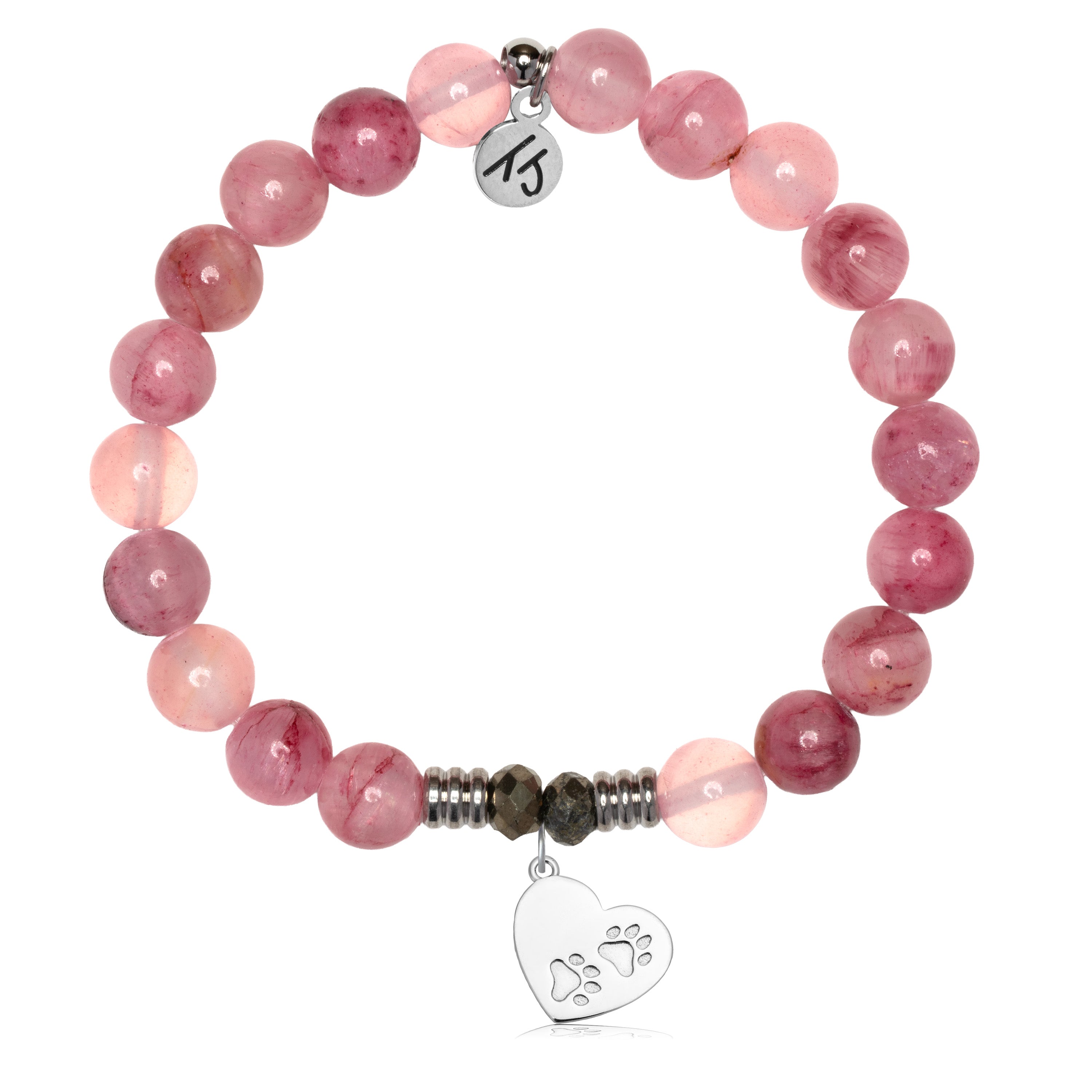 Pink Chalcedony Gemstone Bracelet with Paws of Love Sterling Silver Charm