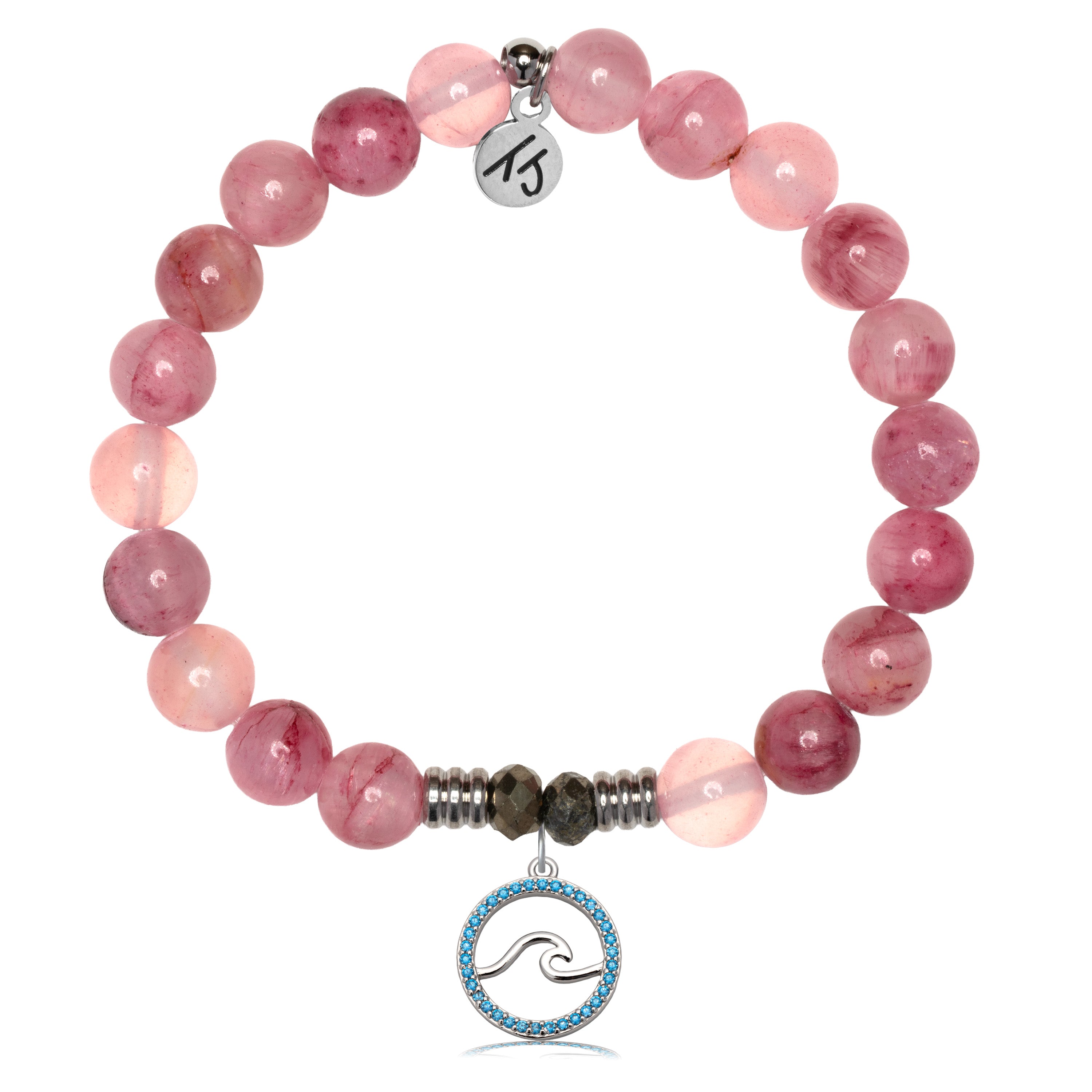 Pink Chalcedony Gemstone Bracelet with Serenity Wave Sterling Silver Charm